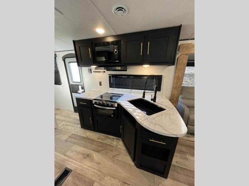 With any Keystone Springdale travel trailer, you will have a friction hinge entry door with sturdy MORryde StepAbove steps, a pass-through storage compartment for your outdoor gear, and reliable Dexter E-Z Lube axles to maneuver your Springdale down the road and into the campsites. Some of the Keystone Exclusives provide 12V color-coded wiring with easy-to-trace circuits which is better than conventional RV wiring allowing a faster diagnosis for quicker repairs, and the streamlined heat distribution that uses in-floor heat vents for more efficiency for uninterrupted air flow. Also included, the Blade high performance air flow system that delivers 30% more air flow. The interior gives you pressed kitchen countertops, pleated night shades, and designer upholstered window valances for easy care and style, and more depending on the Springdale you choose!