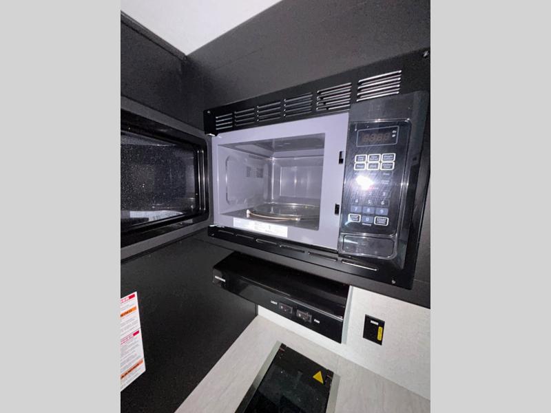 Bring the whole gang and explore with this bunkhouse travel trailer in tow! There is sleeping for up to 10 with double-size bunk beds, a queen bed up front, as well as a sofa and booth dinette that can accommodate more when reconfigured at night. You will easily be able to create meals to enjoy while camping inside with the three-burner range and a 10 cu. ft. 12V refrigerator. Overhead storage is available above the stove and sink and along the opposite side. There is also a front pass-through for housing all of your outdoor gear, as well as additional outside storage beneath the bunk beds. The 12' power awning will also provide more living space and outdoor protection from the sun and/or rain.