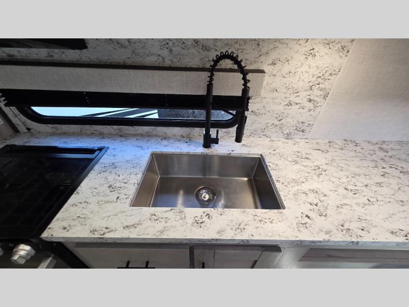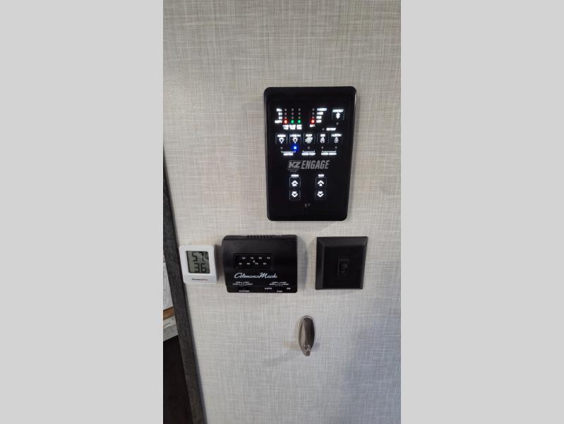 The KZ Connect travel trailer comes with an RV Airflow System which optimizes the airflow for your air conditioner by increasing the airflow by an average of 40%. This improves performance, speeds up cooling times, and reduces noise in your trailer. Some of the other helpful features found on the Connect are the heated, insulated, and enclosed underbelly, the exterior docking station, the fiberglass front cap with front windshield, the 82" interior ceiling height, and the protective front diamond plate. There are some useful technological features, like the two LED motion-sensor lights, the HDMI and USB charge, and the multi-media entertainment system with a DVD player. The KZ Engage is powered by OneControl, and it monitors battery levels and controls slide rooms, the leveling system, the awning, inside/outside lighting, and the TPMS prep.