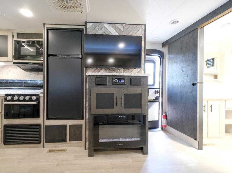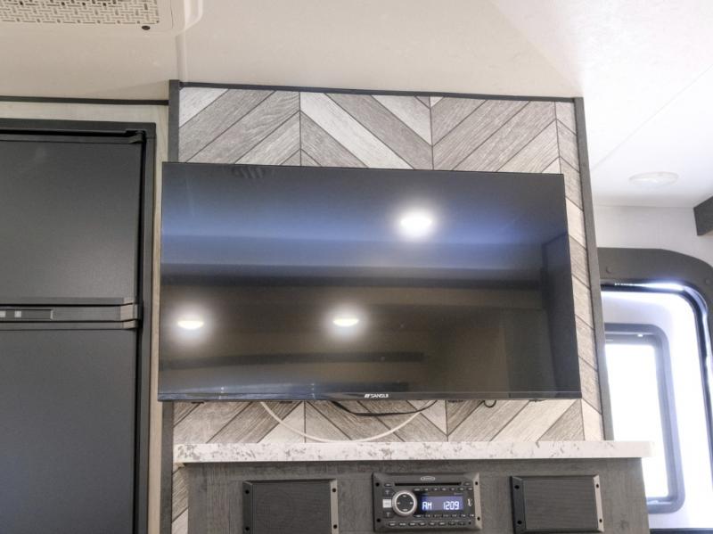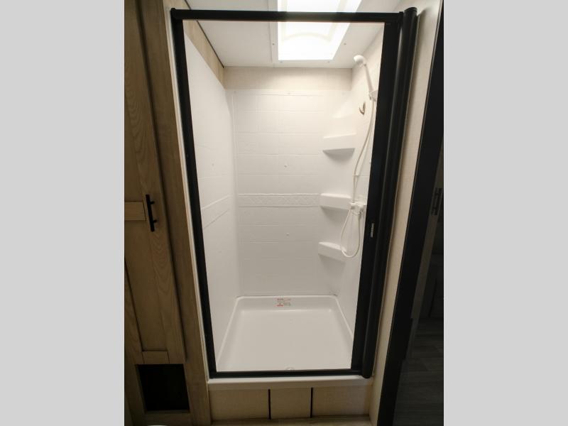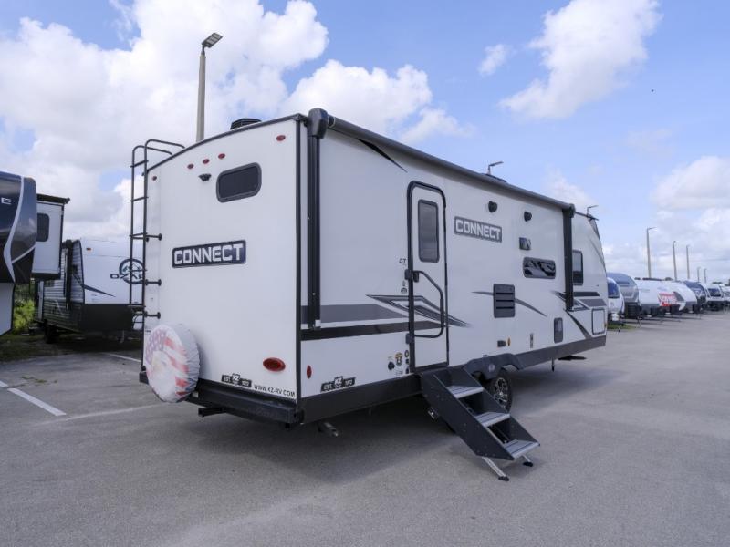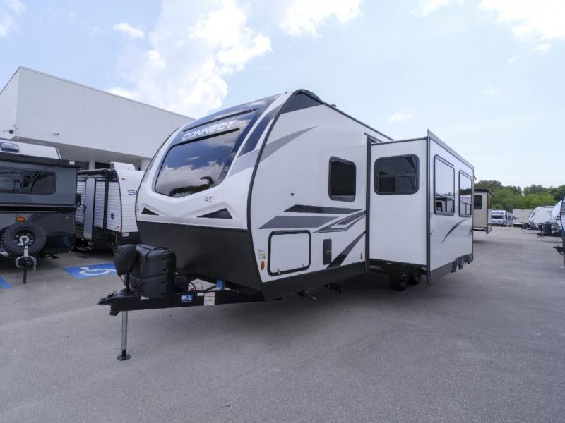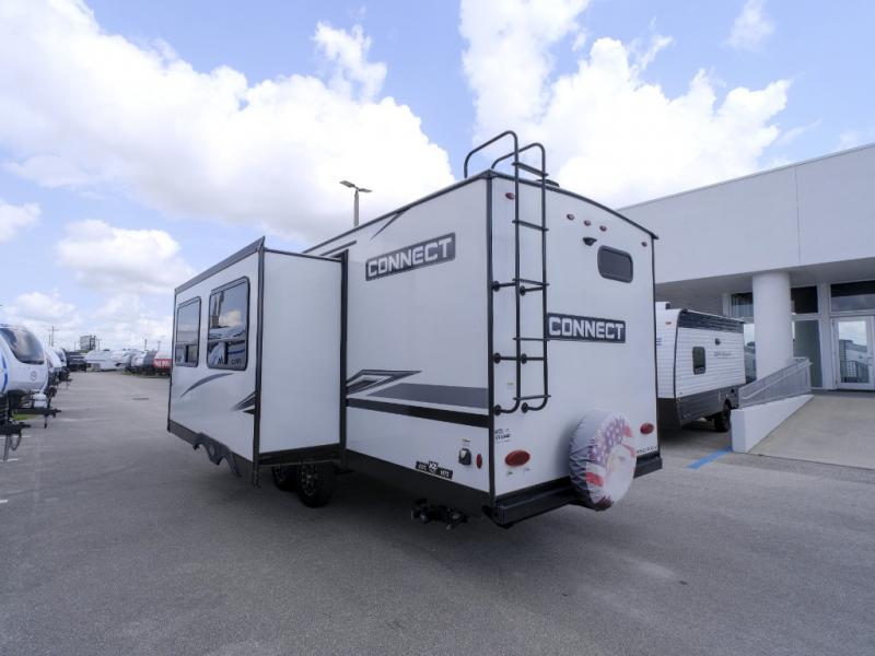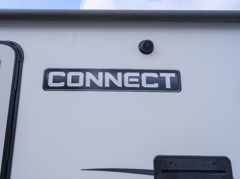 Your needs will be met and your desires will be fulfilled with this Connect travel trailer! Probably the thing you miss most when you camp is your comfortable bed back at home, and that's exactly why this trailer comes with a Serta Comfort foam king mattress in the private bedroom. The other thing you are prone to miss is your bathroom, and the full rear bathroom on this trailer is an excellent replacement with its 30" x 36" shower, skylight, linen closet, MaxxAir vent, porcelain foot-flush toilet, and large vanity. Sit back on the theater seats and enjoy a night of relaxation in front of the LED TV and fireplace. You can even grab a couple of drinks from the 10 cu. ft. 12V refrigerator, or you can make it a fun evening by playing a game together at the dinette.
