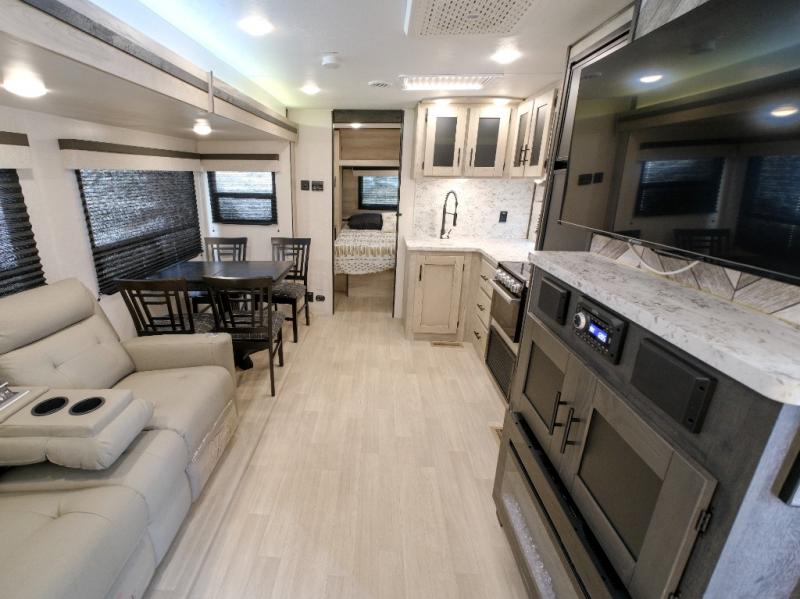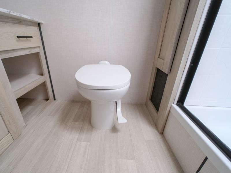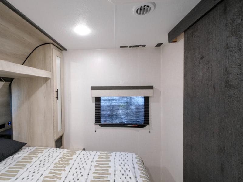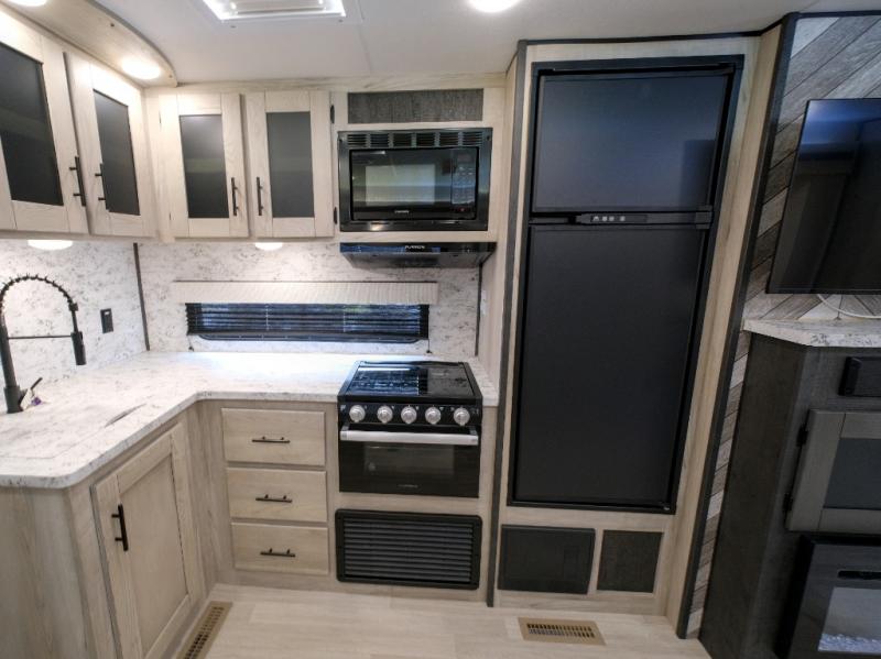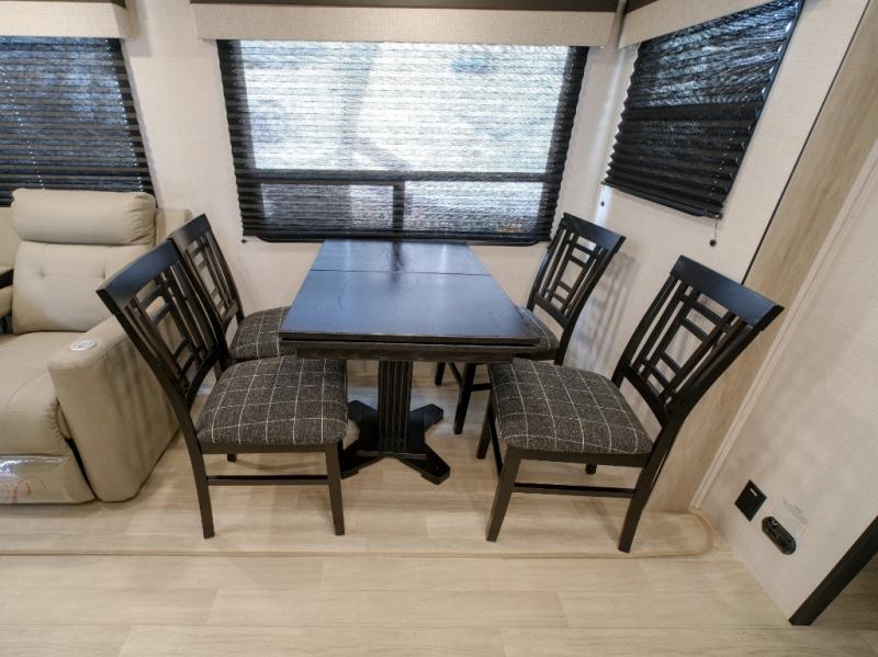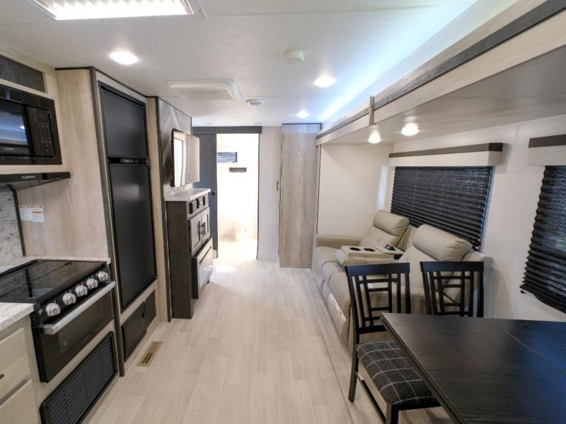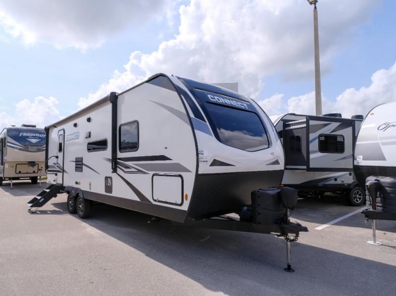 Your needs will be met and your desires will be fulfilled with this Connect travel trailer! Probably the thing you miss most when you camp is your comfortable bed back at home, and that's exactly why this trailer comes with a Serta Comfort foam king mattress in the private bedroom. The other thing you are prone to miss is your bathroom, and the full rear bathroom on this trailer is an excellent replacement with its 30" x 36" shower, skylight, linen closet, MaxxAir vent, porcelain foot-flush toilet, and large vanity. Sit back on the theater seats and enjoy a night of relaxation in front of the LED TV and fireplace. You can even grab a couple of drinks from the 10 cu. ft. 12V refrigerator, or you can make it a fun evening by playing a game together at the dinette.