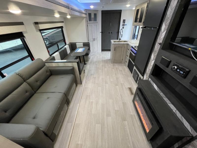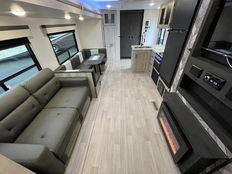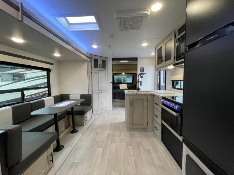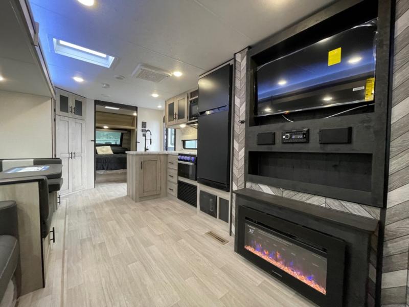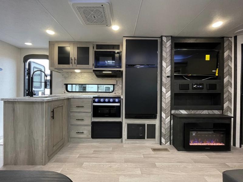 The KZ Connect travel trailer comes with an RV Airflow System which optimizes the airflow for your air conditioner by increasing the airflow by an average of 40%. This improves performance, speeds up cooling times, and reduces noise in your trailer. Some of the other helpful features found on the Connect are the heated, insulated, and enclosed underbelly, the exterior docking station, the fiberglass front cap with front windshield, the 82" interior ceiling height, and the protective front diamond plate. There are some useful technological features, like the two LED motion-sensor lights, the HDMI and USB charge, and the multi-media entertainment system with a DVD player. The KZ Engage is powered by OneControl, and it monitors battery levels and controls slide rooms, the leveling system, the awning, inside/outside lighting, and the TPMS prep.