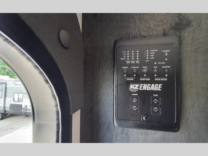 Each Connect SE travel trailer by KZ includes an NXG frame foundation that is constructed with high-strength low-alloy prime steel, uses the CNC controlled rail fabrications and camber, plus eliminates frame failures, construction issues, and corrosion! The Climate package provides added insulation to extend your camping season year-round with a fully enclosed, insulated and heated underbelly to protect the tanks and pipes. Some top features include the 17-inch range with illuminated control knobs, the seamless countertops with a deep undermount stainless steel kitchen sink including a sink cover for added countertop space, and a black high-rise faucet. You will also enjoy the KZ Engage package that is powered by OneControl to monitor and control the battery levels, the slide(s), the leveling system, the awning(s), plus the inside and outside lighting. Choose your favorite today!