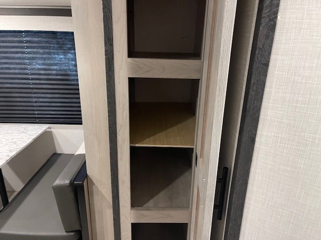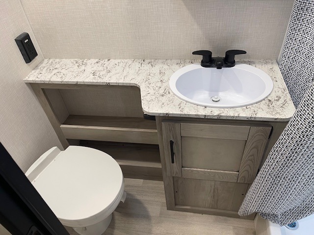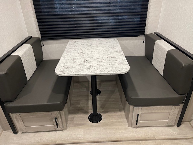 You will have everything you need for a fun camping trip in this travel trailer! Starting with a good night's rest on the front queen bed with wardrobes on either side and a TV mount area to watch movies in bed when you add a TV. The rear has a L-sofa with pull out ottomans for extra comfort and an optional 39" TV above an optional 30" fireplace. There is also a booth dinette slide to enjoy your meals, play card games, and even transform into an extra sleeping space. Stay squeaky clean with the 30" x 36" shower in the full bathroom!