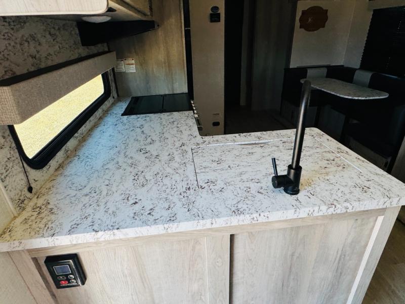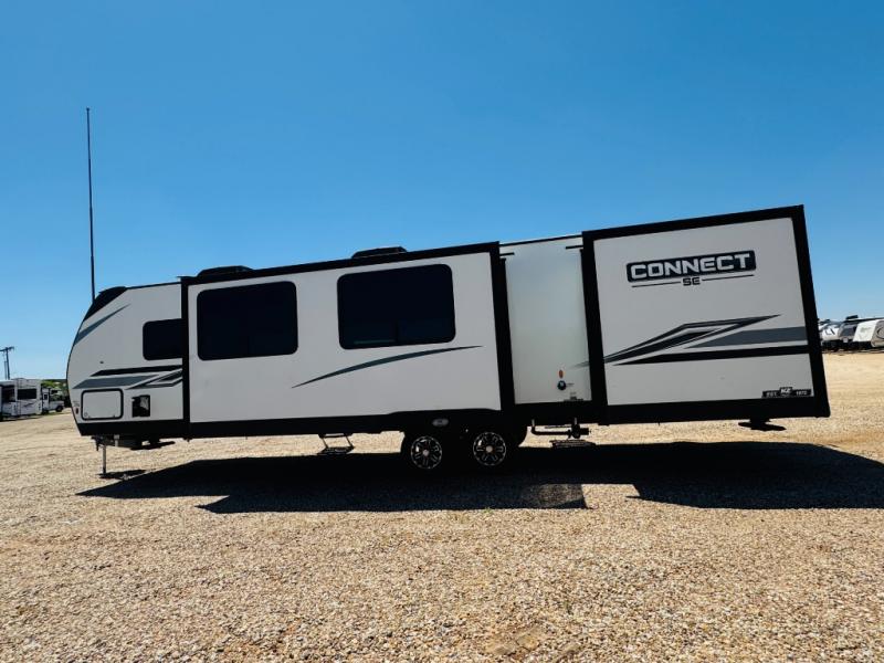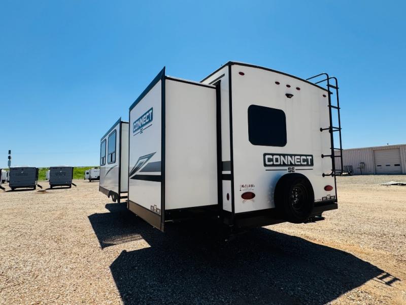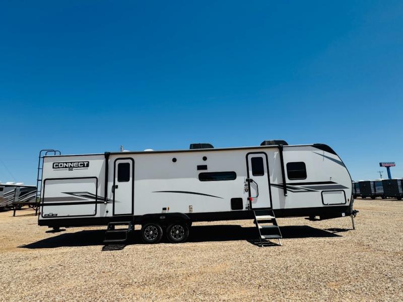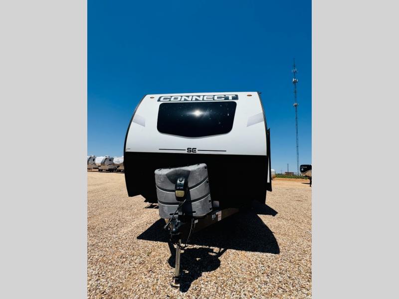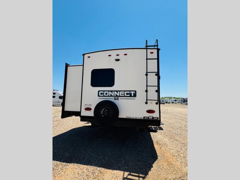 Each Connect SE travel trailer by KZ includes an NXG frame foundation that is constructed with high-strength low-alloy prime steel, uses the CNC controlled rail fabrications and camber, plus eliminates frame failures, construction issues, and corrosion! The Climate package provides added insulation to extend your camping season year-round with a fully enclosed, insulated and heated underbelly to protect the tanks and pipes. Some top features include the 17-inch range with illuminated control knobs, the seamless countertops with a deep undermount stainless steel kitchen sink including a sink cover for added countertop space, and a black high-rise faucet. You will also enjoy the KZ Engage package that is powered by OneControl to monitor and control the battery levels, the slide(s), the leveling system, the awning(s), plus the inside and outside lighting. Choose your favorite today!