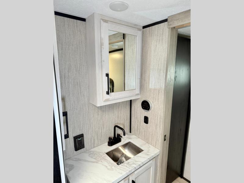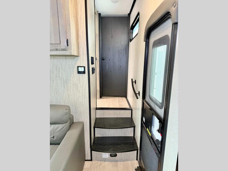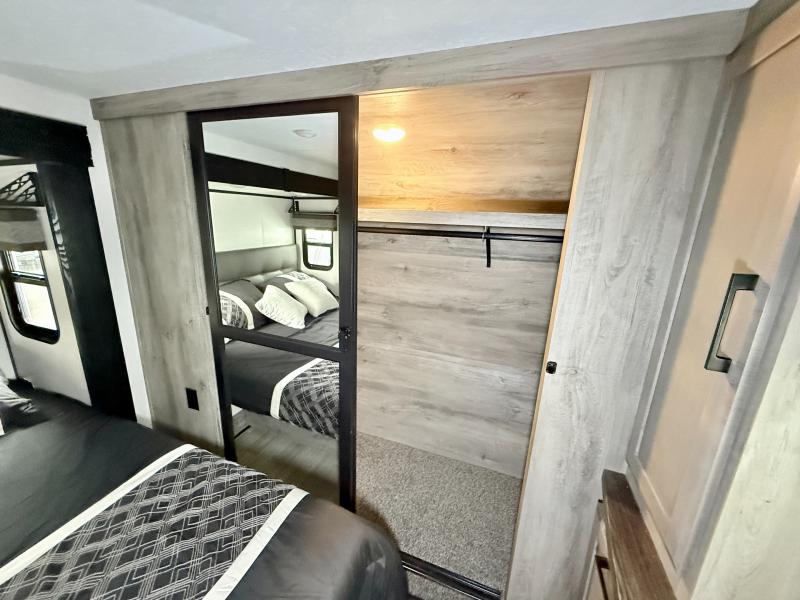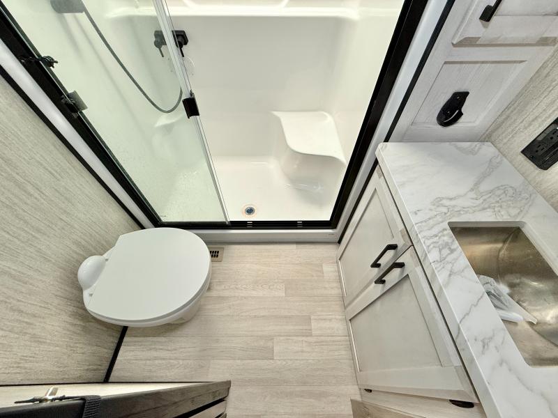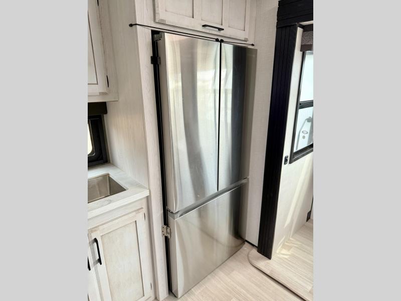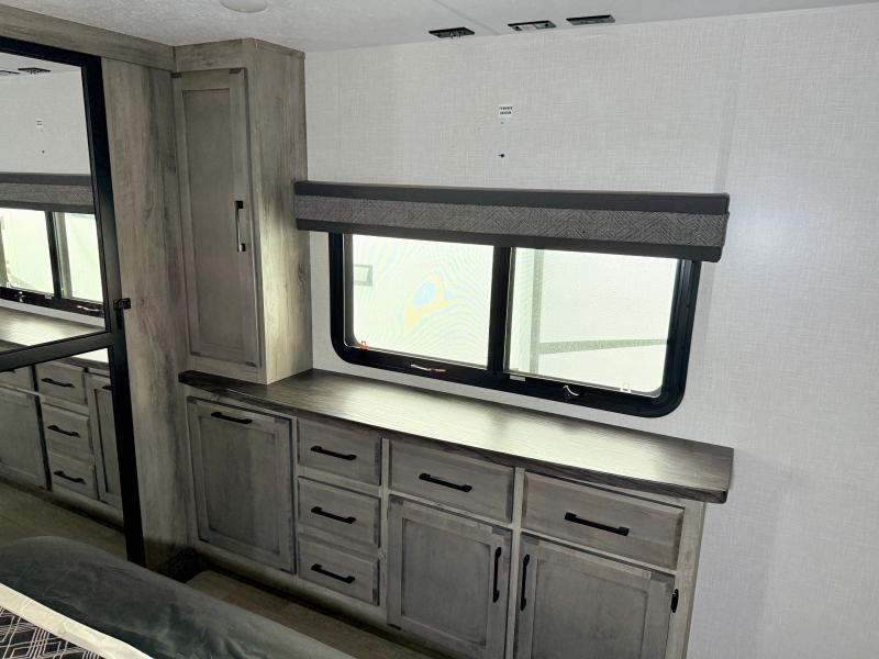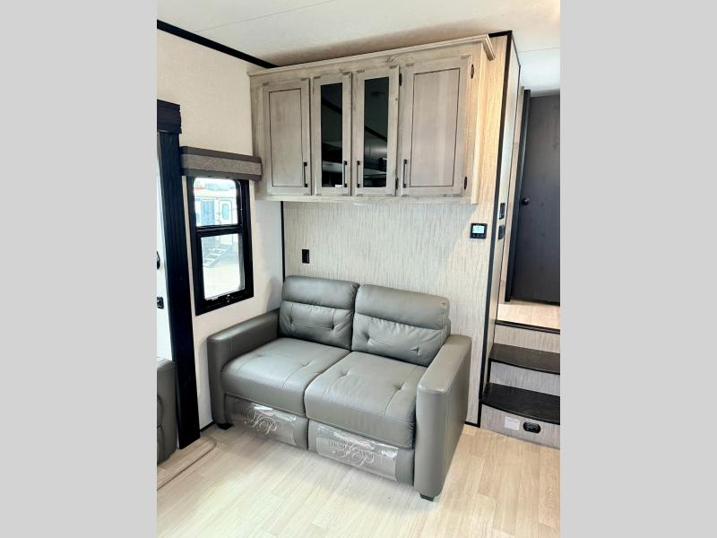 Enjoy full time living, an affordable price, and a wide body construction for more living space with every one of these KZ Durango light high-profile fifth wheels! These luxury units can be used all year round with the all-weather insulation package, the 3" x 14" foam-core in-floor straight-line heating system w/ a 35,000 BTU furnace, and the 15,000 BTU ducted roof A/C which optimizes the airflow by an average of 40% for better performance, cooling time, and reduction of noise. A few other construction features you will appreciate include a one piece, seamless walk-on Tufflex roofing material, Pex® in-floor heated waterlines, a Lamilux® gelcoat fiberglass exterior, and Dexter® axles with self adjusting brakes and height adjusting hangers. You can even head to the woods and go off-grid when you choose the optional off-the-grid solar package. Modern farmhouse cabinetry, a king size bed, and smart TVs will have you feeling like you never left home!