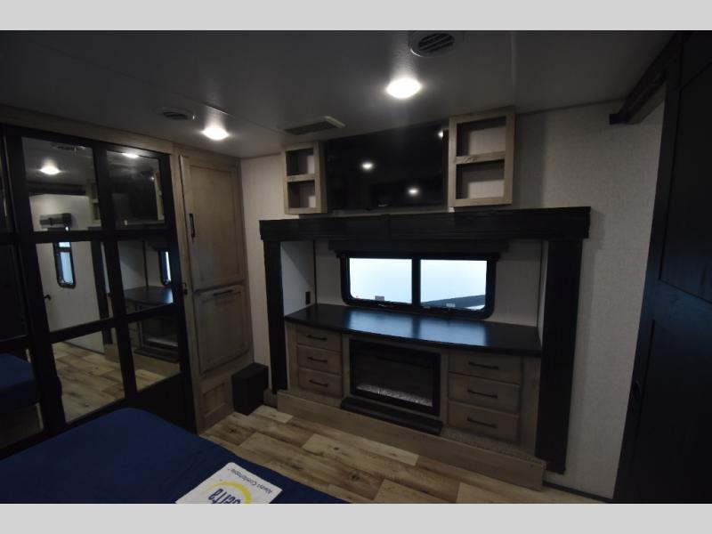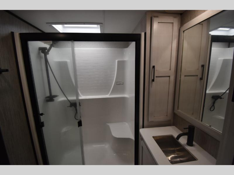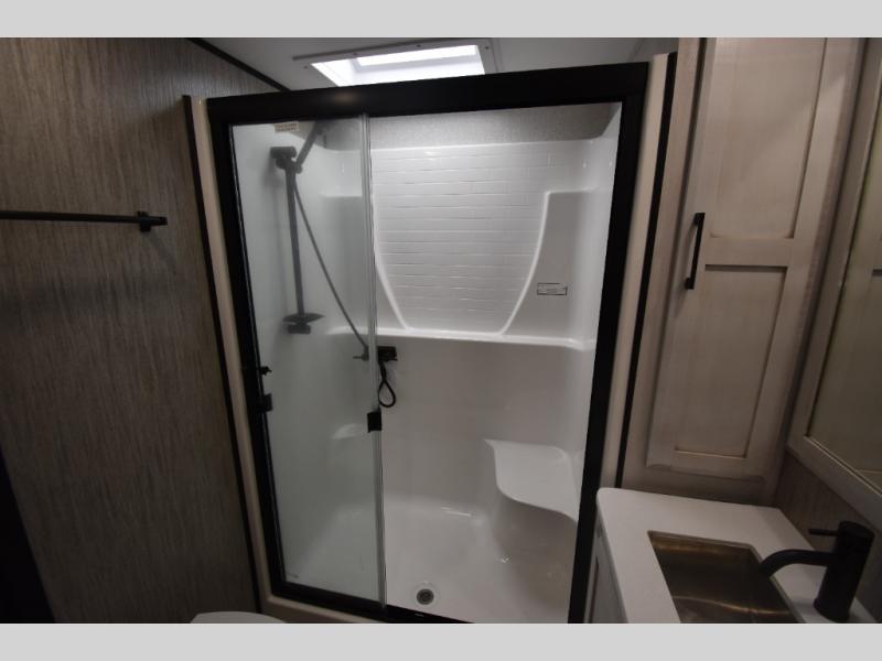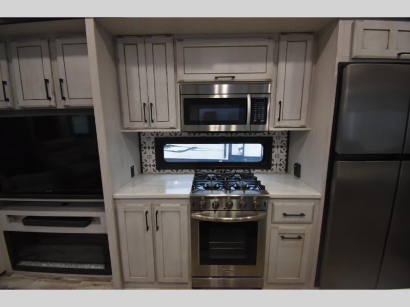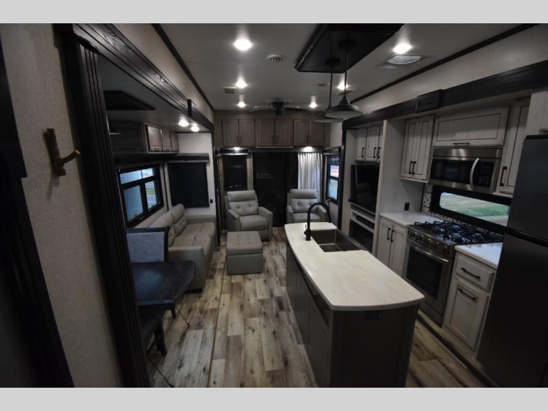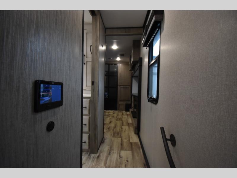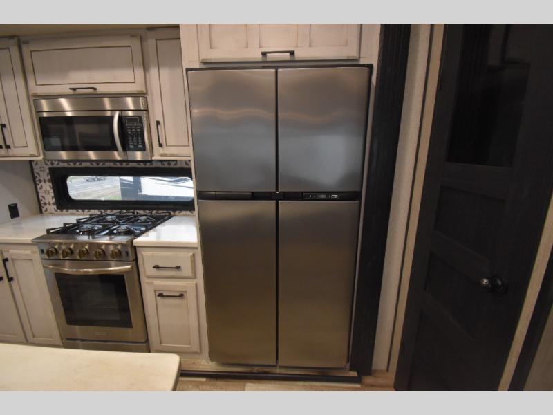 With any KZ Durango Gold full-time luxury fifth wheel, you will enjoy the look of modern farmhouse cabinetry, upgraded kitchen appliances such as a 30" convection microwave and 24" oven with four burner range, plus a stainless dishwasher. Other top features include an electric tilt bed with Serta Comfort foam king mattress, theater seating with cupholders and a USB plug, plus heat, massage, and power recline/decline features. You will also appreciate a handy central vacuum system with multiple attachments that stores out of sight. Each Durango Gold is constructed with six-sided aluminum framing, and has heated, insulated and an enclosed underbelly. It is also constructed with Tufflex roofing material which is flexible, puncture resistant, and reflective. Some additional standout features include a fully-vented attic system, and a Durango Towing package which includes a 2" towing receiver hitch with 4-pin wire harness connection. This will provide you with 3,000 lbs. of towing capacity. Come choose your favorite lightweight high-profile wide body luxury fifth wheel today!