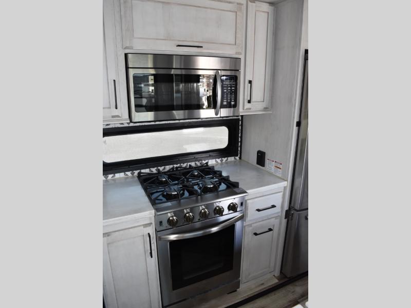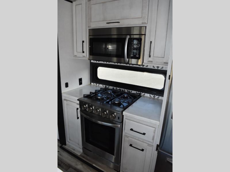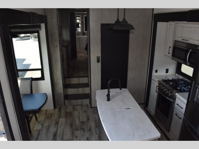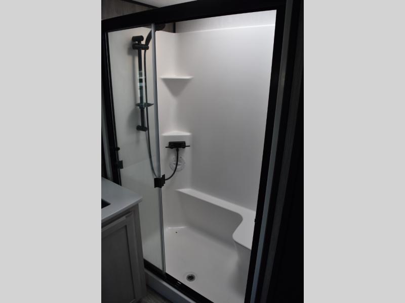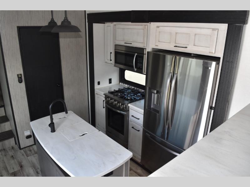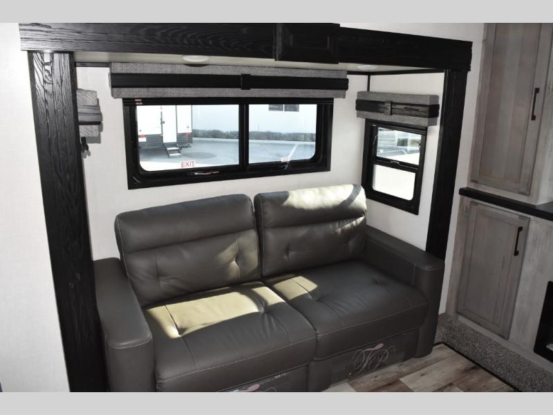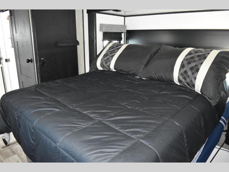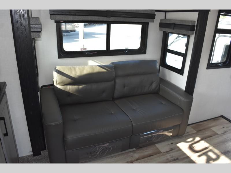 With any KZ Durango Gold full-time luxury fifth wheel, you will enjoy the look of modern farmhouse cabinetry, upgraded kitchen appliances such as a 30" convection microwave and 24" oven with four burner range, plus a stainless dishwasher. Other top features include an electric tilt bed with Serta Comfort foam king mattress, theater seating with cupholders and a USB plug, plus heat, massage, and power recline/decline features. You will also appreciate a handy central vacuum system with multiple attachments that stores out of sight. Each Durango Gold is constructed with six-sided aluminum framing, and has heated, insulated and an enclosed underbelly. It is also constructed with Tufflex roofing material which is flexible, puncture resistant, and reflective. Some additional standout features include a fully-vented attic system, and a Durango Towing package which includes a 2" towing receiver hitch with 4-pin wire harness connection. This will provide you with 3,000 lbs. of towing capacity. Come choose your favorite lightweight high-profile wide body luxury fifth wheel today!