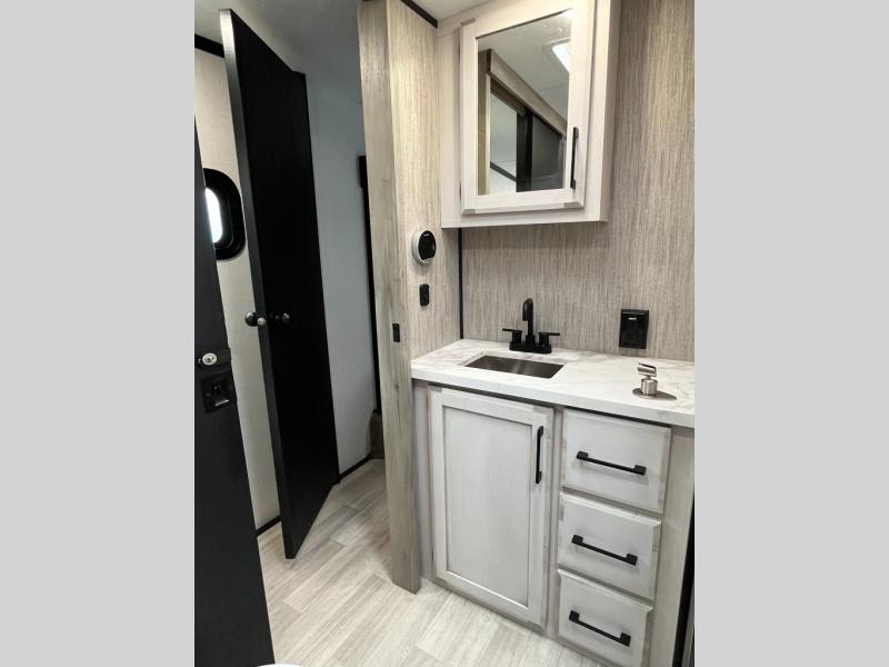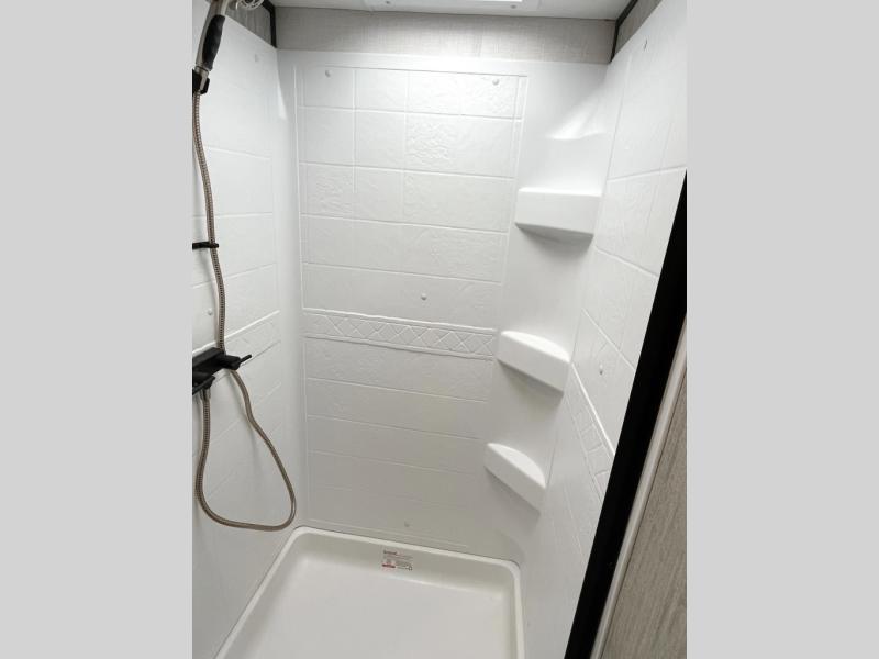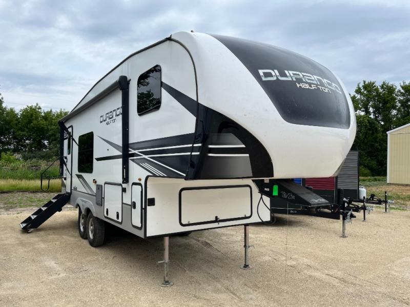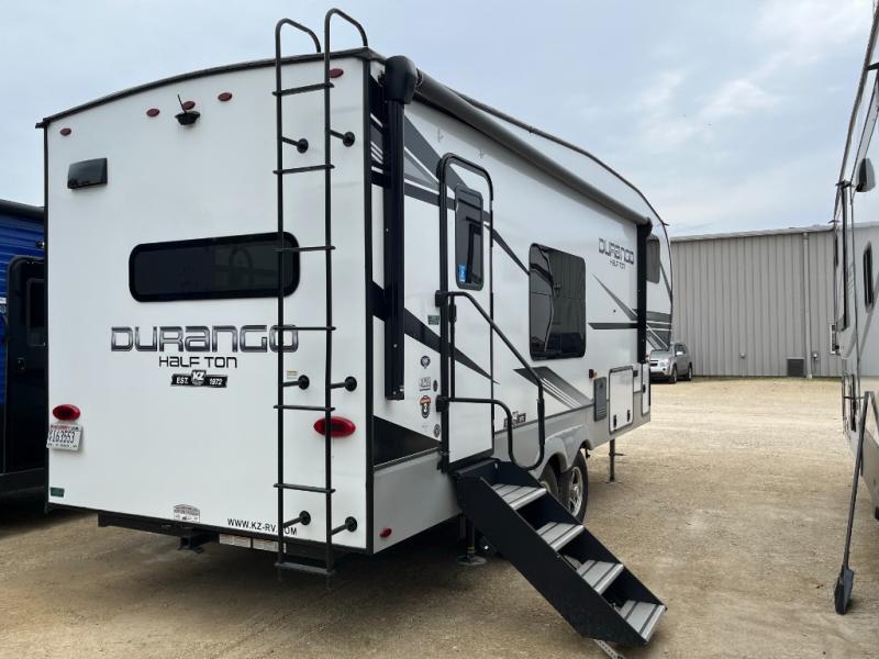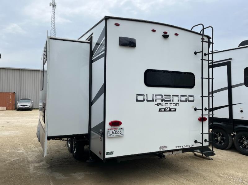 With any Durango Half-Ton fifth wheel by KZ you will enjoy lightweight towing at an affordable price! Controlling the functions of your unit will be a breeze with the KZ Engage powered by OneControl that includes a 5" touchscreen to control awnings, lights, tanks, and more. There are so many exterior conveniences to make each trip enjoyable, like the 2" towing receiver hitch with a four-pin wire harness connection, the metal latches on the baggage doors, the fully-finished, heated and sealed basement storage compartment, and the list goes on! Step inside to find modern farmhouse cabinetry, solid hardwood slide out fascia, seamless countertops with a deep undermount stainless steel sink, and many more at-home comforts. You can further customize your fifth wheel by adding one or more of the many options that are available, like the full-timers hardwood desk in place of the dinette table, the 32" exterior TV with a bracket, and the four-point auto electric leveling to name a few!