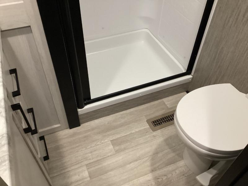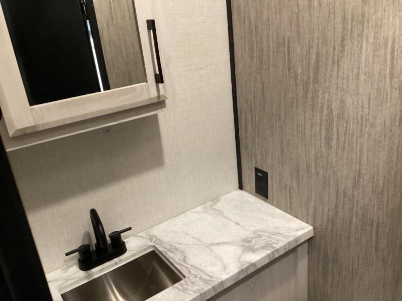 Bathroom and living amenities support comfort and convenience that make camping feel more like home.
