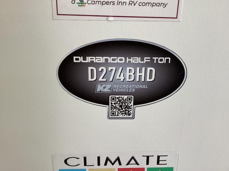 Used 2023 KZ Durango Half-Ton D274BHD — Comfortable, Versatile & Travel-Ready