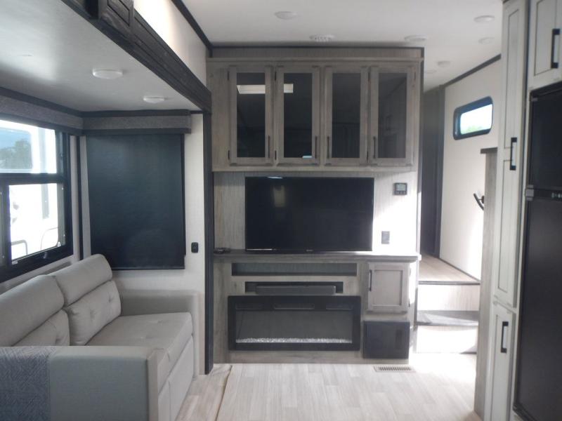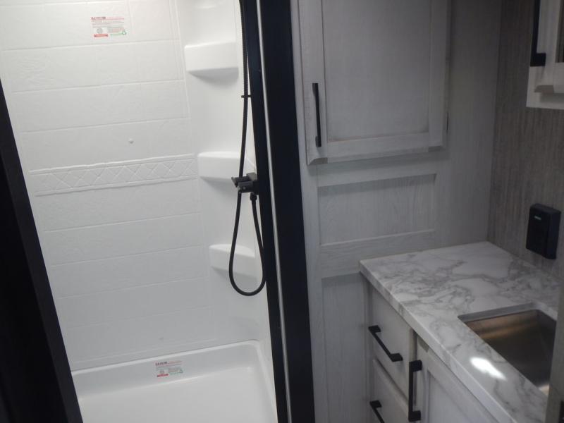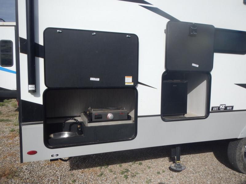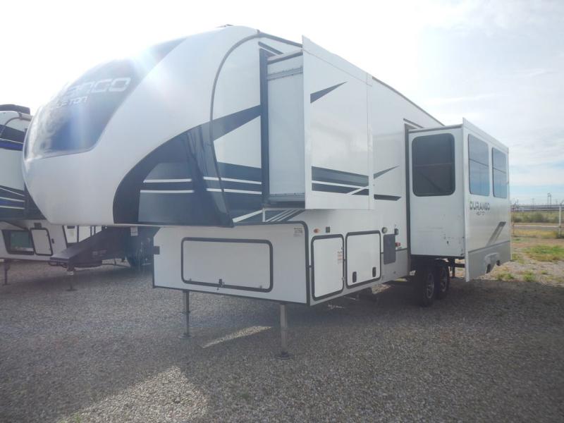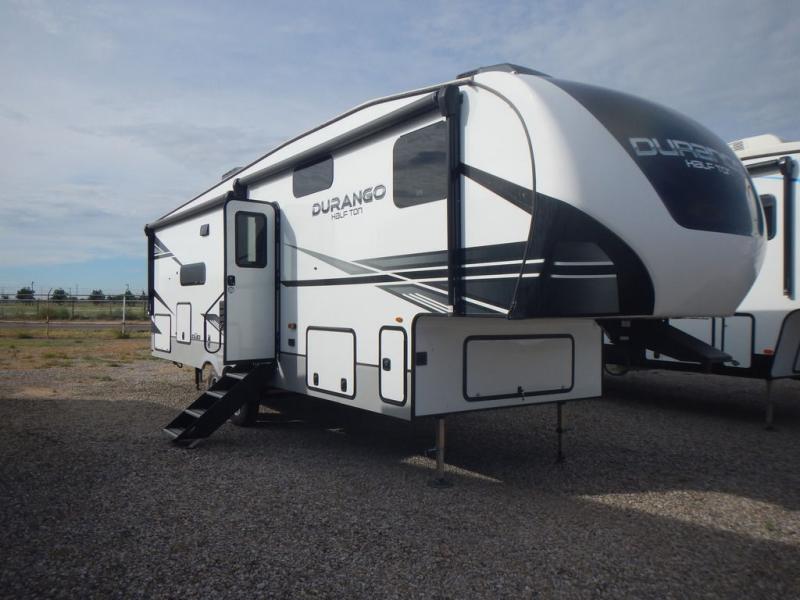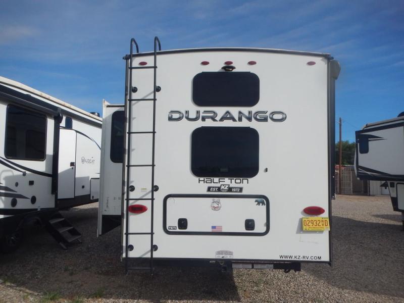 With any Durango Half-Ton fifth wheel by KZ you will enjoy lightweight towing at an affordable price! Controlling the functions of your unit will be a breeze with the KZ Engage powered by OneControl that includes a 5" touchscreen to control awnings, lights, tanks, and more. There are so many exterior conveniences to make each trip enjoyable, like the 2" towing receiver hitch with a four-pin wire harness connection, the metal latches on the baggage doors, the fully-finished, heated and sealed basement storage compartment, and the list goes on! Step inside to find modern farmhouse cabinetry, solid hardwood slide out fascia, seamless countertops with a deep undermount stainless steel sink, and many more at-home comforts. You can further customize your fifth wheel by adding one or more of the many options that are available, like the full-timers hardwood desk in place of the dinette table, the 32" exterior TV with a bracket, and the four-point auto electric leveling to name a few!