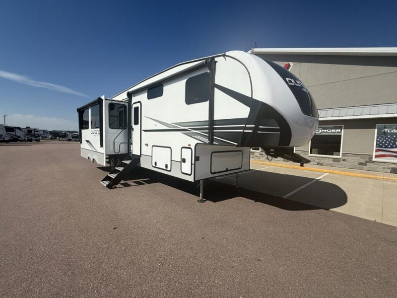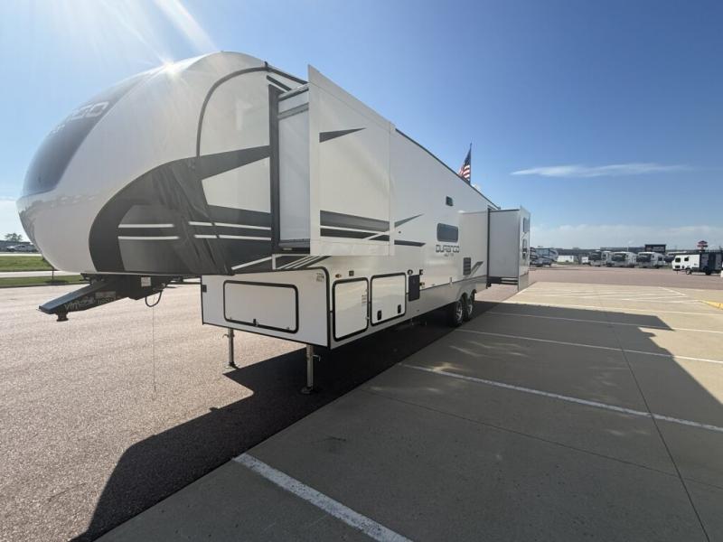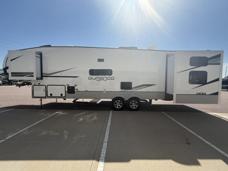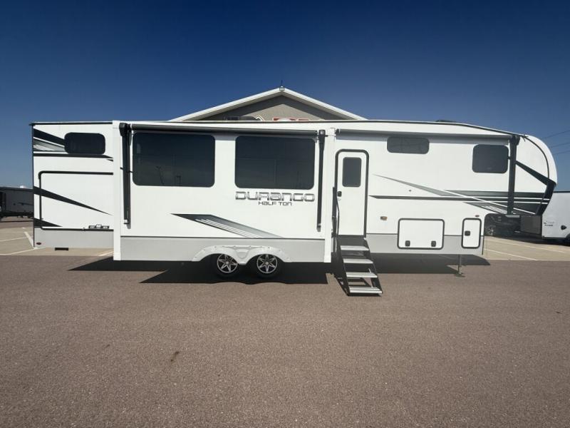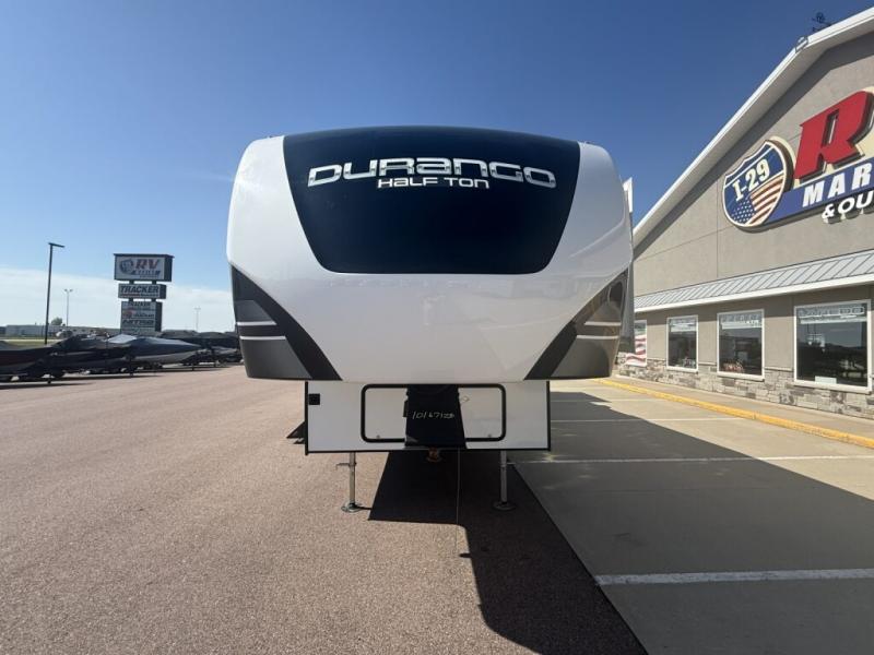 Durango Half-Ton is where lightweight travel meets fifth wheel amenities. Rest and enjoy all the comforts this RV has to offer, from the modern interiors, optional electric fireplace, and additional outdoor kitchen area (select models).