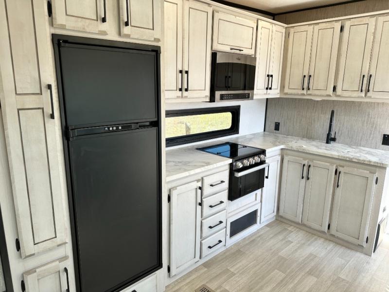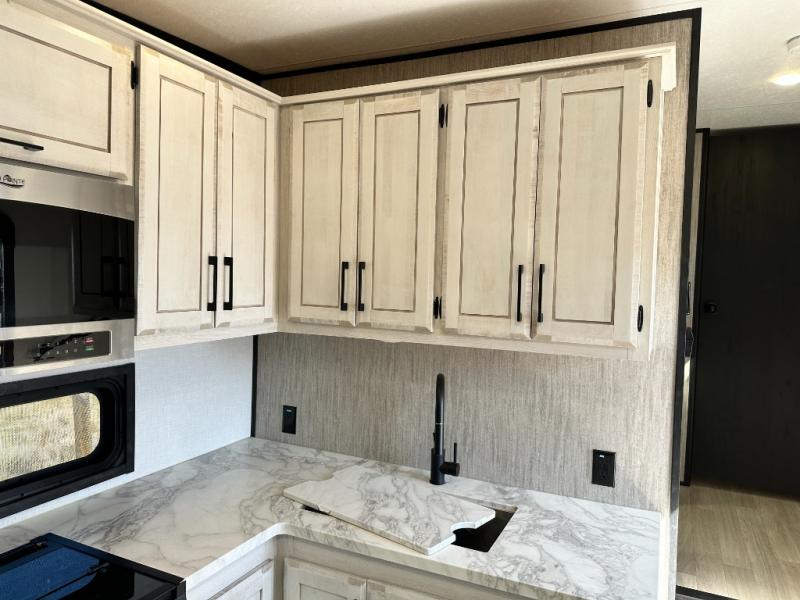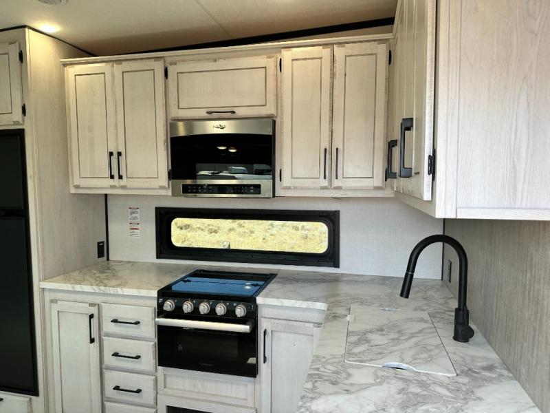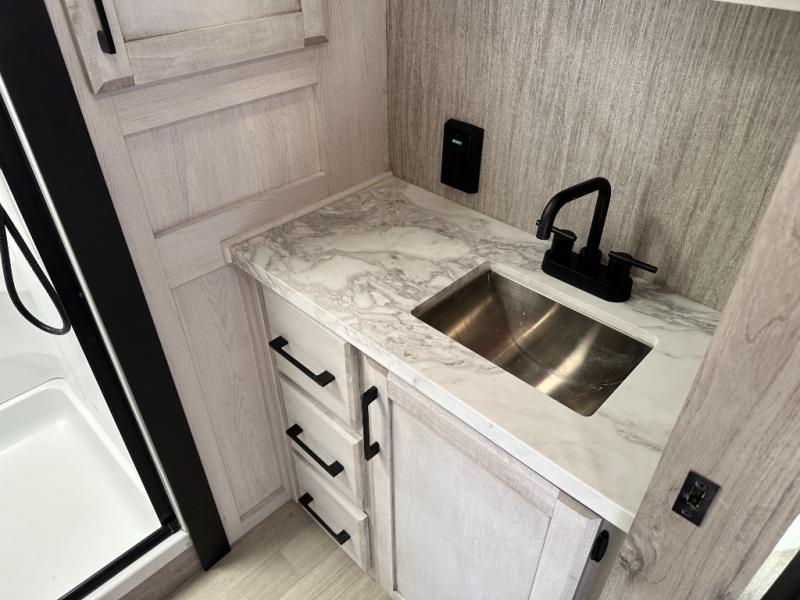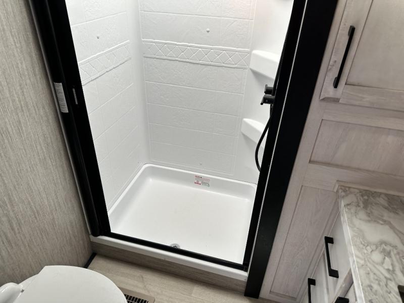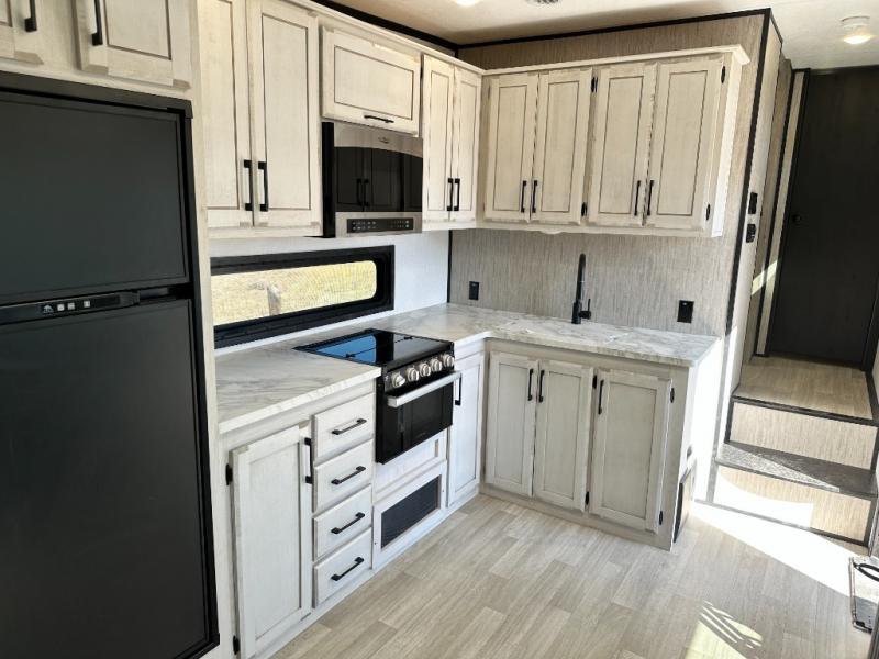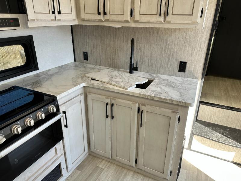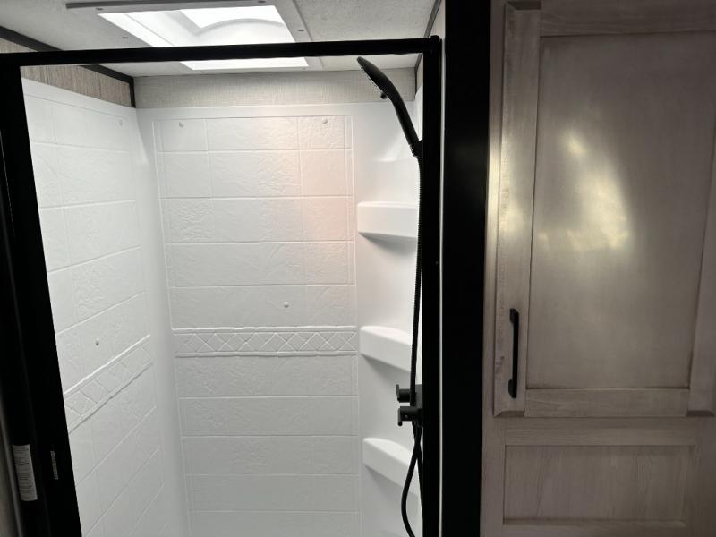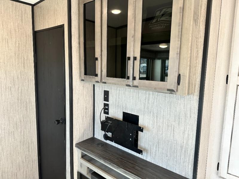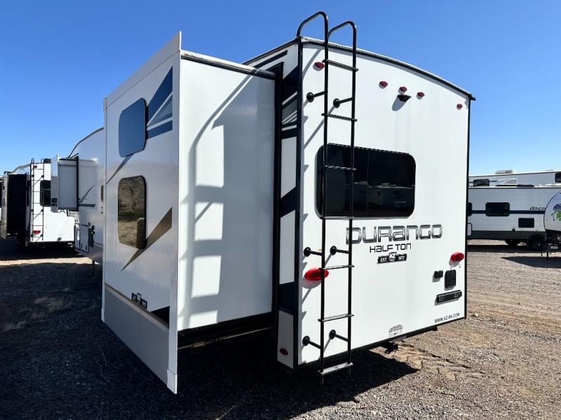 With any Durango Half-Ton fifth wheel by KZ you will enjoy lightweight towing at an affordable price! Controlling the functions of your unit will be a breeze with the KZ Engage powered by OneControl that includes a 5" touchscreen to control awnings, lights, tanks, and more. There are so many exterior conveniences to make each trip enjoyable, like the 2" towing receiver hitch with a four-pin wire harness connection, the metal latches on the baggage doors, the fully-finished, heated and sealed basement storage compartment, and the list goes on! Step inside to find modern farmhouse cabinetry, solid hardwood slide out fascia, seamless countertops with a deep undermount stainless steel sink, and many more at-home comforts. You can further customize your fifth wheel by adding one or more of the many options that are available, like the full-timers hardwood desk in place of the dinette table, the 32" exterior TV with a bracket, and the four-point auto electric leveling to name a few!