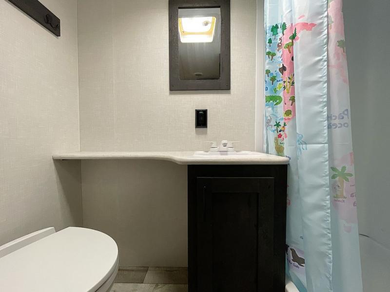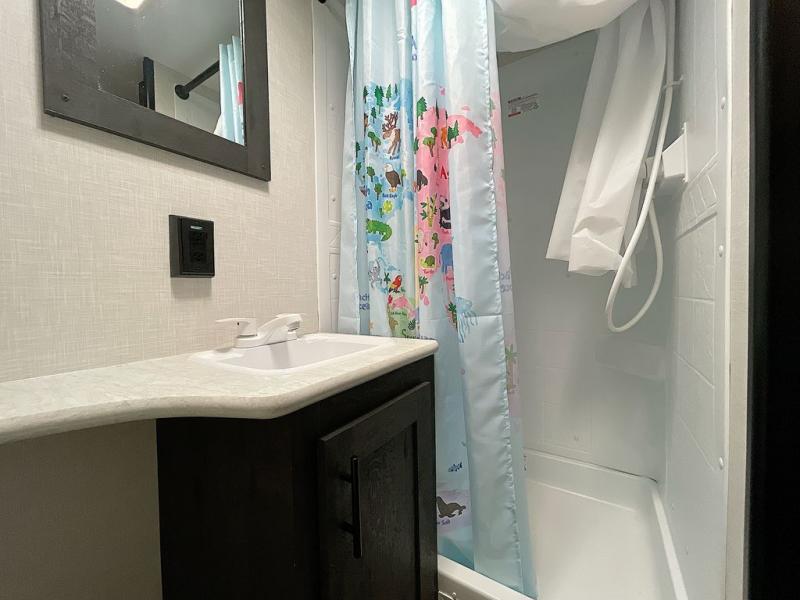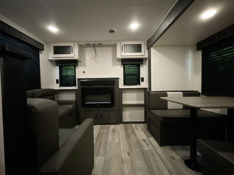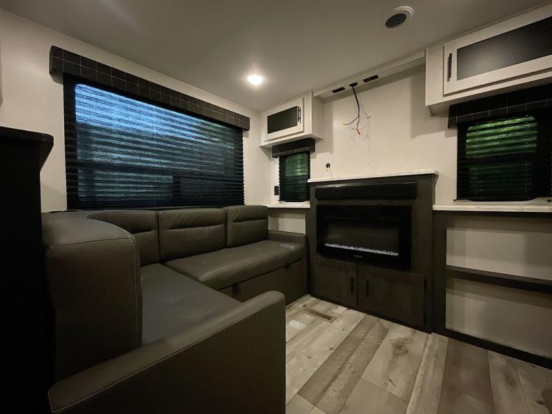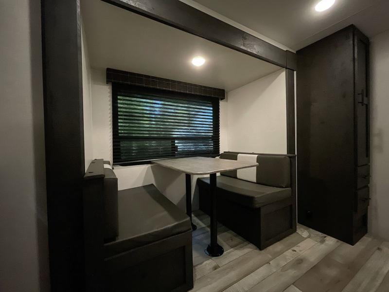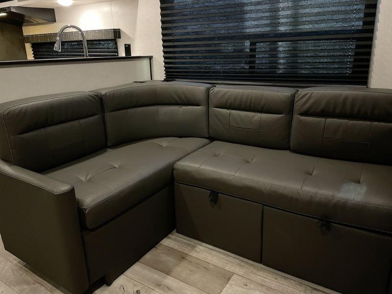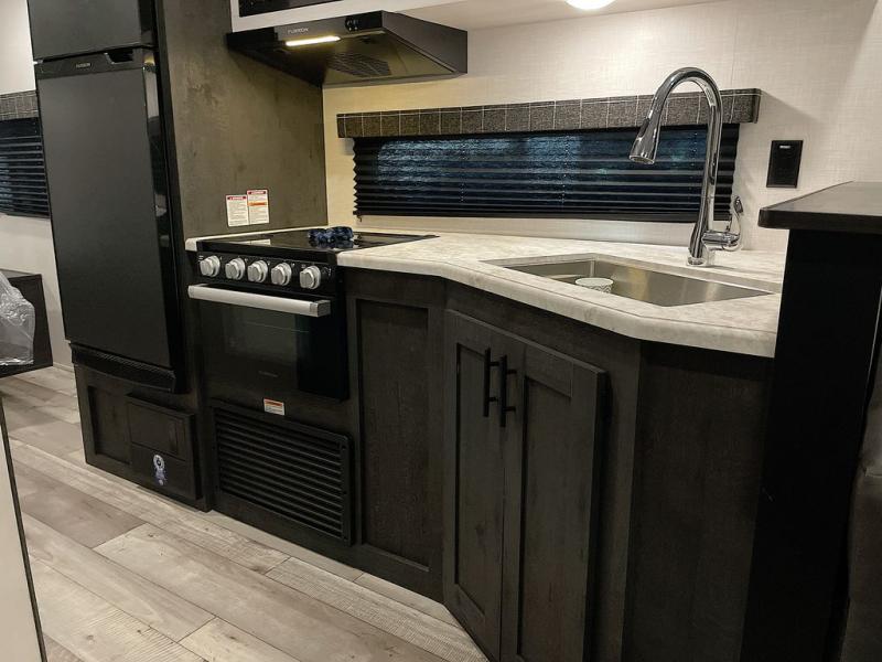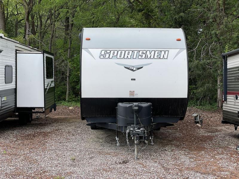 The perfect couples coach in this Sportsmen SE trailer with a queen bed up front for a great night's rest including wardrobe storage on both sides of the bed to keep your clothing wrinkle free. The complete kitchen and bath features everything you need to create meals on the go and stay clean and refreshed as well. The rear of the unit features a booth dinette slide for added floor space to move around. This is great for dining or playing a game of cards. Opposite the room an L-shaped sofa with pull-out ottomans for comfort as you kick back and relax for the evening with a good book, or add the optional 39" TV and enjoy! Outside, you can easily create more living space thanks to the 18' awning, and there is a nice pass-through storage compartment for all of your outdoor camping gear and equipment like camp chairs, bean bag toss, fishing rods and more.