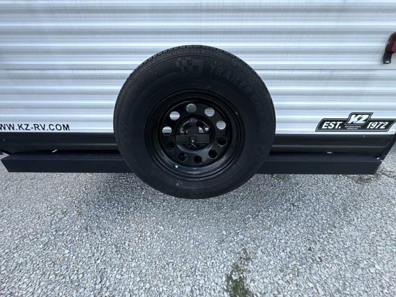 Each Sportsmen SE travel trailer and toy hauler by KZ is constructed with KZ exclusive tough shield exterior metal, a one-piece seamless walk-on Tufflex roofing material, and diamond plate rock guard to protect your unit from road debris. You will appreciate the extra large baggage doors for stowing away your gear when not in use, and tinted windows to help keep the harmful sun rays out plus keeping it cooler inside. Some of the exterior conveniences found in the mandatory Advantage Package are the solid folding steps with large folding grab handle for easy entry and exit, a power tongue jack for ease in setting up your unit, plus an exterior shower for your pets or to rinse off before you head inside. You'll also appreciate the nitrogen-filled tires, solar and backup camera prep, plus a Leash Latch with a bonus beverage opener. You'll feel right at home inside with linoleum flooring throughout, a 13,500 BTU air conditioner, large overhead cabinets, a shower surround, and much more!