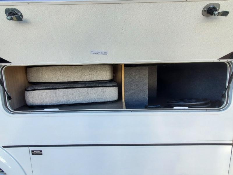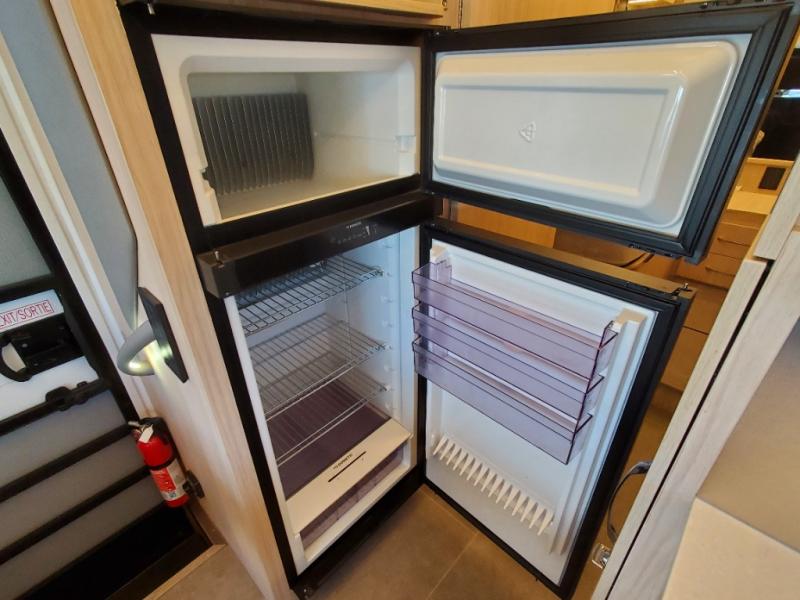 Comfortable and versatile features allow you to travel the way you like in this Unity Class B+ diesel motorhome. You have plenty of choices on how you want to sleep and how you would like to dine. Each night, you can sleep separately from your spouse on one of the two twin-size beds or convert the twins into one king-size bed for more space together. Even the bathroom area is multi-functional because of its separate lavatory from the enclosed shower, and the adjustable front seating area is handy for dining, sleeping, or playing a card game with the family. The flush-mount LP cooktop makes it easy to make your delicious meals, and if you have any leftovers, then you can store them inside the 6.7-cu. ft. refrigerator/freezer.