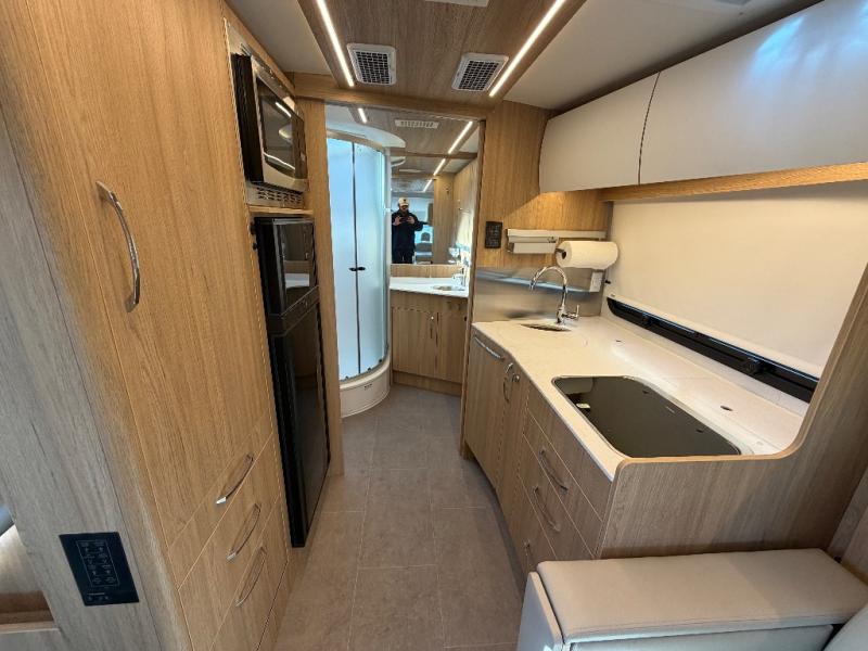 Wonder's first slide out coach is here with this 24MBL! You will find that the Murphy bed will provide a great night's rest each night, and the full bath will allow you to clean up each morning. The swivel captain's seats can turn around to become part of the living area during the day, and you'll find plenty of storage space throughout for all your belongings. The galley includes a convection microwave, a flush mount LP cooktop, plus a convenient garbage can and stainless steel backsplash for easy clean-up.