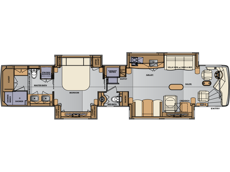 45' - Quad Slide Newell Coach with Front Entry Door and Super Enlarged Rear Master Bath