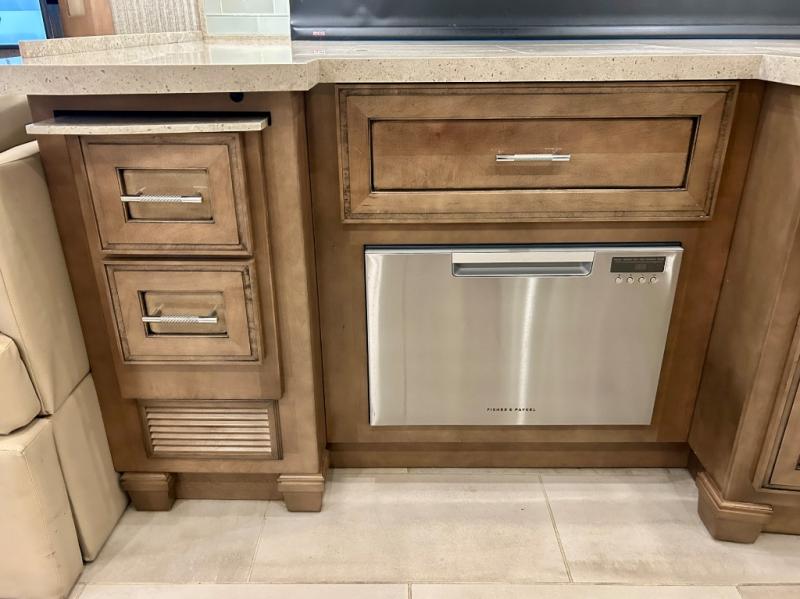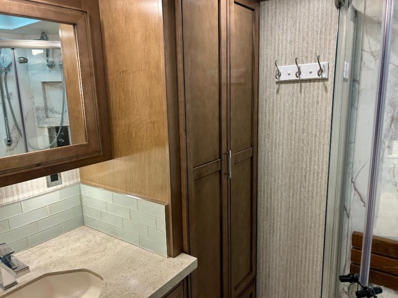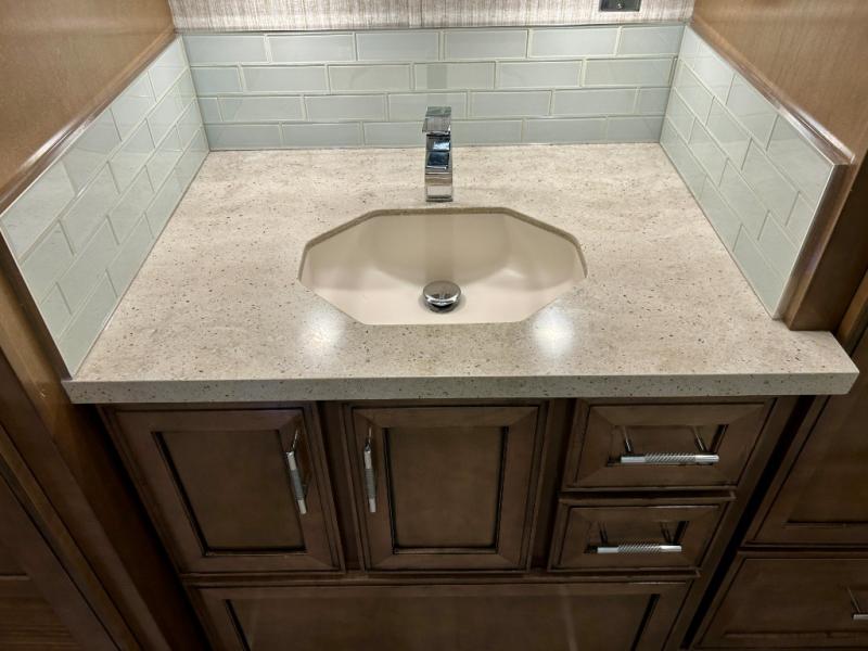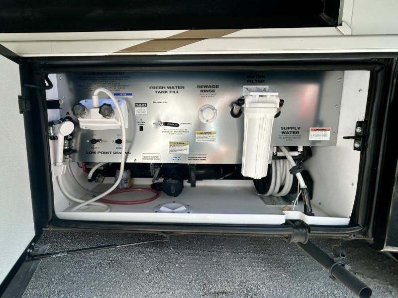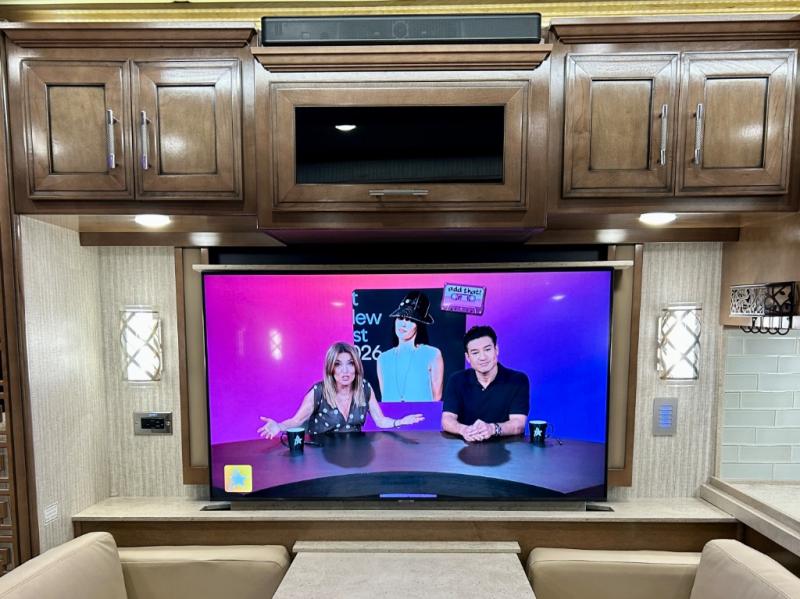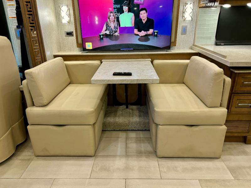 Trips near and far are made complete in this triple slide out coach for five to six. The Samsung TV on power lift in the living area will allow you to have movie nights, and there is a comfortable side hide-a-bed sofa to relax on. If you'd rather play a game of cards, the booth dinette will be the perfect place to sit at, or you can enjoy the power awning outdoors. There is a bath and a half that will come in handy when traveling with friends and family, and you might want to add a washer and dryer since there is washer and dryer prep in the full rear bath!