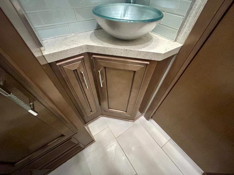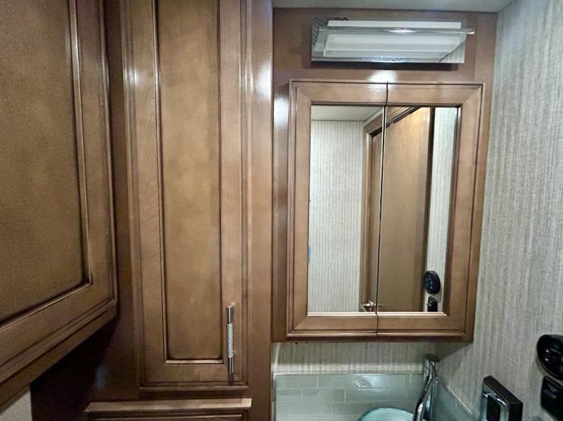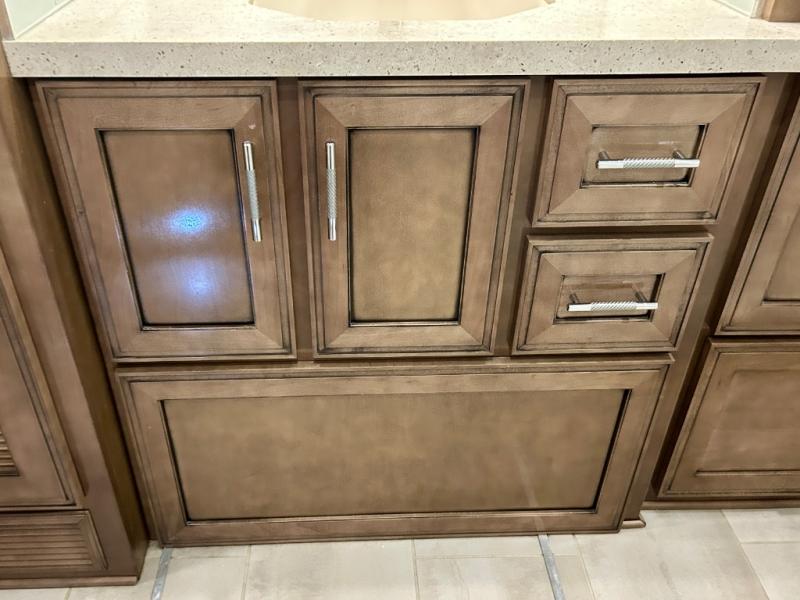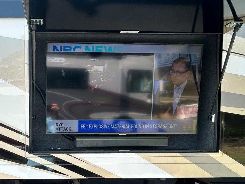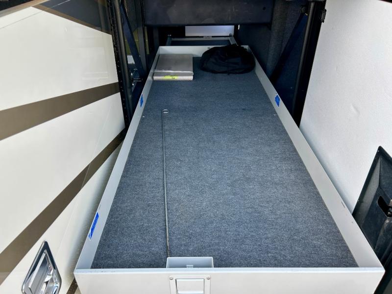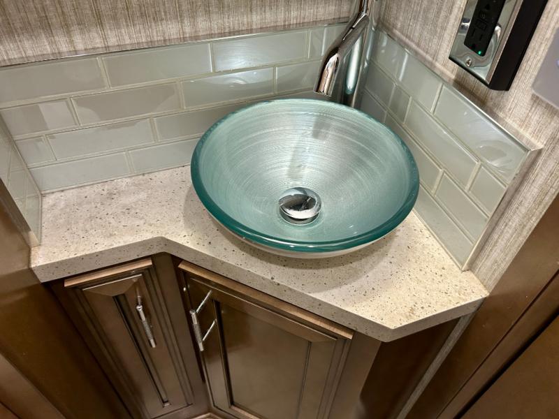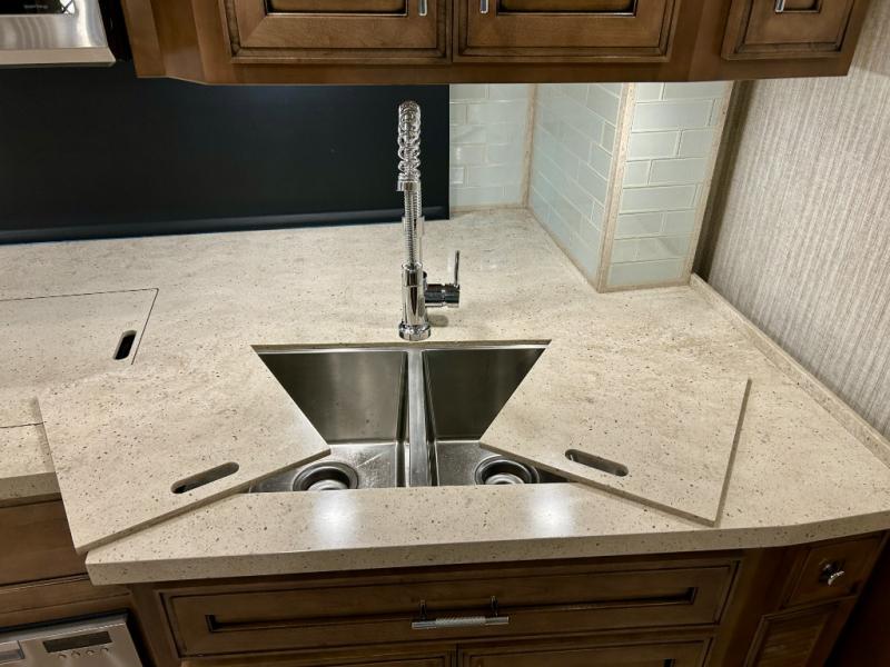 Trips near and far are made complete in this triple slide out coach for five to six. The Samsung TV on power lift in the living area will allow you to have movie nights, and there is a comfortable side hide-a-bed sofa to relax on. If you'd rather play a game of cards, the booth dinette will be the perfect place to sit at, or you can enjoy the power awning outdoors. There is a bath and a half that will come in handy when traveling with friends and family, and you might want to add a washer and dryer since there is washer and dryer prep in the full rear bath!