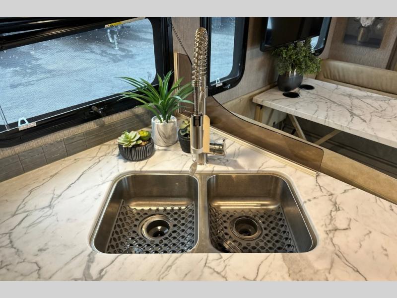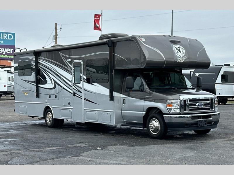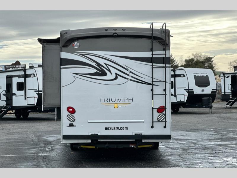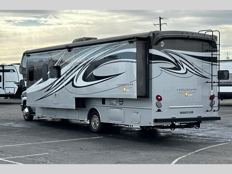 Build your dream with one of these NeXus RV Triumph Class C gas motorhomes! Their high strength low alloy lightweight steel cage sidewalls and roof is 72% stronger and the hypoallergenic composite substrate is impervious to water, plus their walk on fiberglass roof is damage resistant too. The extreme weather conditions got nothing on the rubber-lined galvanized trunk boxes which are crack resistant and the heated tanks road protection with extended season capability. You will enjoy their sleek interiors with hardwood cabinetry, accent lighting, upgraded lino flooring, and nickel pull handles and fixtures throughout. There is even residential galvanized HVAC ducting and a deluxe innerspring mattress. Come choose your favorite model today!