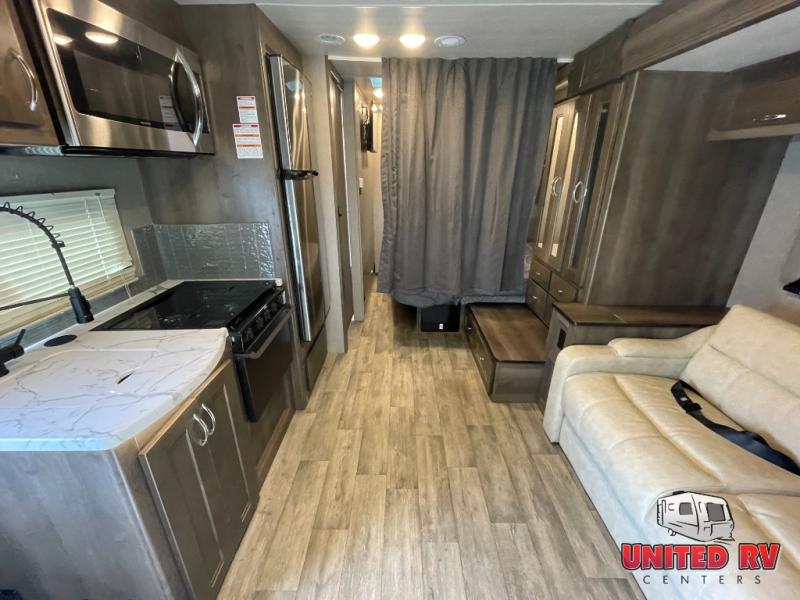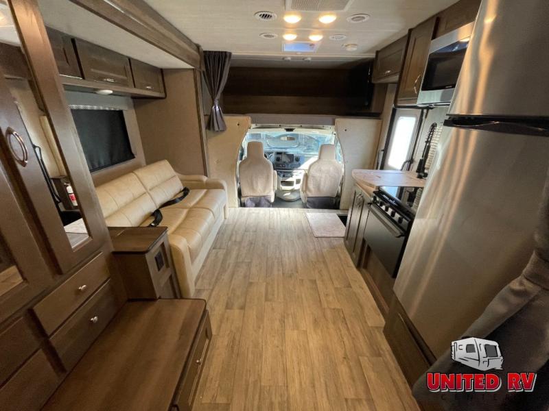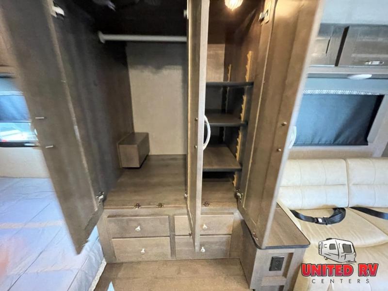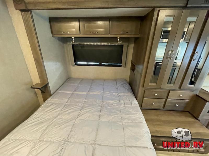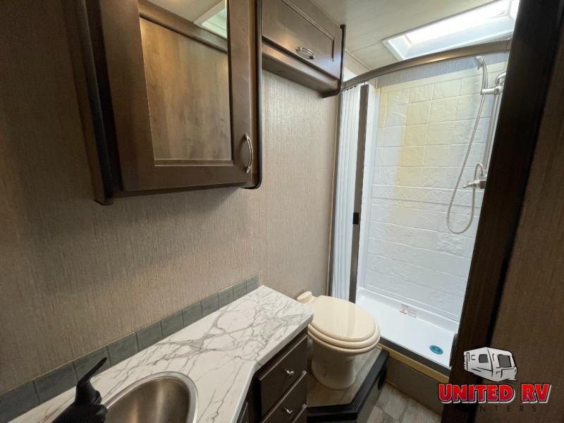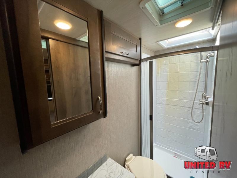Experience reliability and comfort with this Phantom Class C gas motorhome! The full-wall slide makes it a joy to spend time indoors because it provides you with extra living space without adding to the overall width of the coach. You can use the booth dinette for gathering together at dinnertime, and after you transform it into a bed, you can also use the dinette for sleeping at night. A large wardrobe provides you with space to store your clothing, and the full bathroom with shower skylight is exceptional for keeping the entire group clean throughout each adventure.