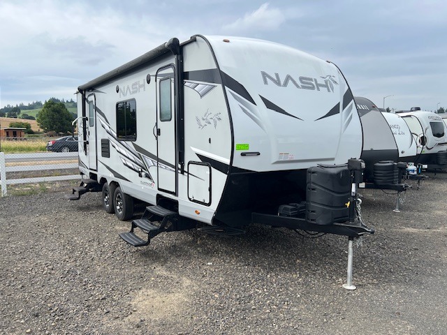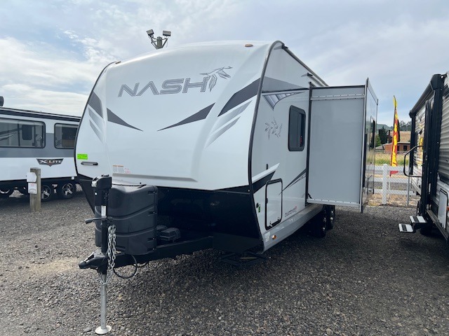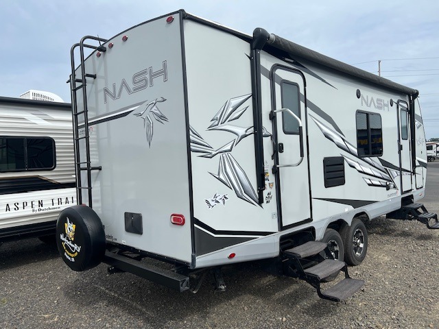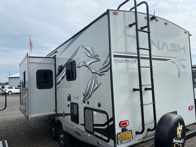 Every one of these Northwood Nash travel trailers are built off-road tough! From the Northwood custom built chassis that has been independently tested and certified to the bonded roof truss system, the easy lube axles, and shock absorbers. The one piece laminate fiberglass walls, the structural joints reinforced with steel Hurricane plates, and the 5/8" T & G plywood decking ensures these units will hold up through any adventure. The interior will feel more like home with stainless steel appliances, fabric night shade window treatments, custom one-piece formed countertops, and many more comforts. There are marine grade speakers outdoors, along with an exterior shower, LED lighting, and a 45 watt solar panel to name a few exterior conveniences.