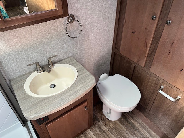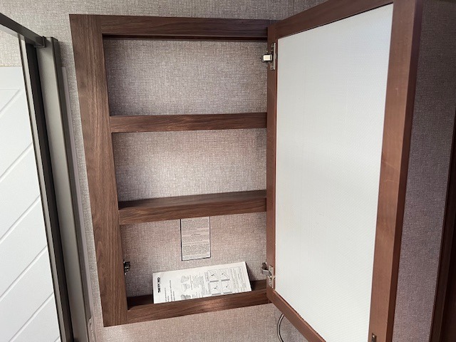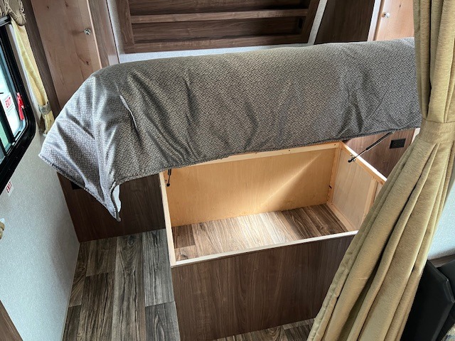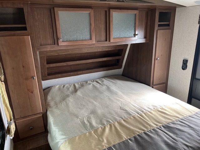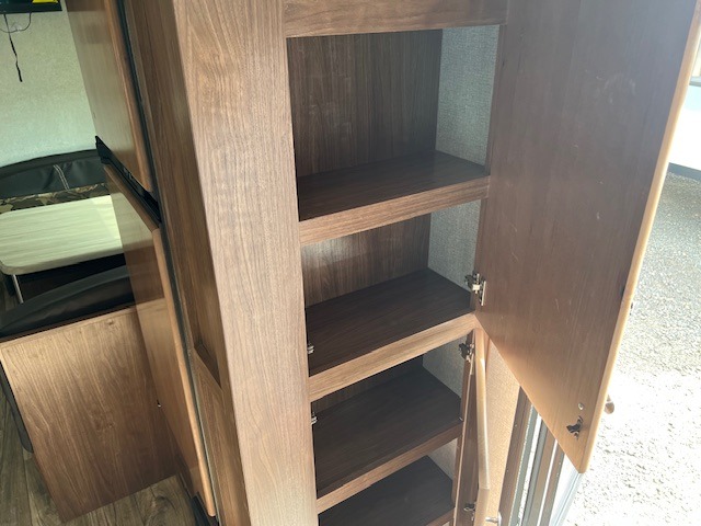 One look at this dual entry travel trailer and you'll be hooked! There are stainless steel appliances, a pantry, and an L-shaped kitchen countertop the chef of your group will love. The full bathroom is in the rear of the trailer and offers a wardrobe for more storage. You will enjoy your own space in the front bedroom that includes a privacy curtain and its own exterior entry door for convenience. Outside, you can enjoy features like the Carefree Travl'R 12V awning to protect you from the sun while you watch the kids play, and the outdoor shower allows you to rinse off after a fun day outdoors.