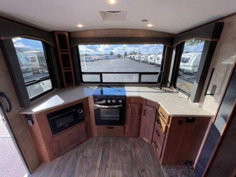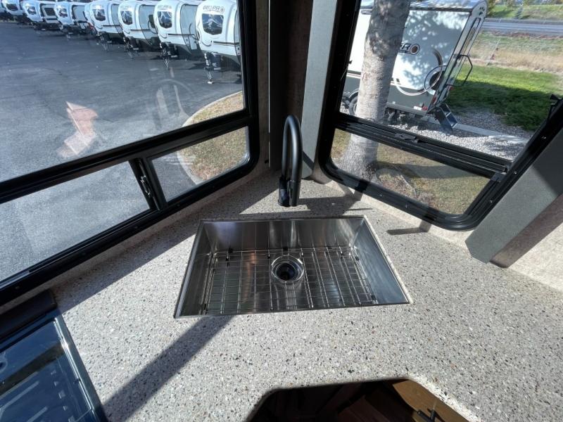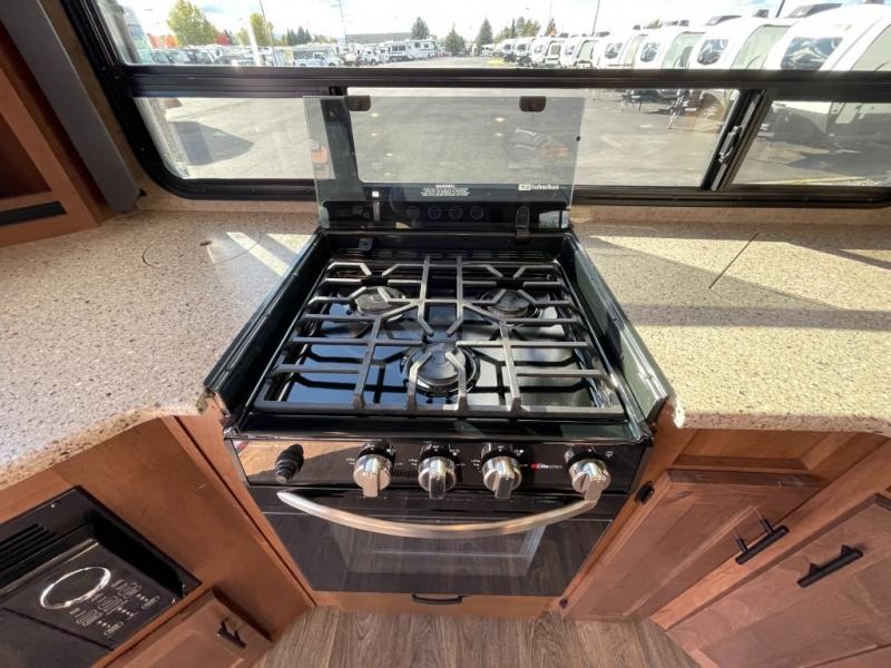 With any Timber Ridge Mountain Series travel trailer by Outdoors RV you will enjoy climate designed four seasons camping thanks to the thermal pane windows and the fully enclosed, heated, and insulated underbelly. The custom built chassis and rugged integrated A-frame are built for strength and durability, along with the rugged 2" bonded aluminum frame walls. Each model includes LG solid surface countertops, granite designed backsplash, vaulted radius ceilings, and a mountain comfort premium mattress for all-around comfort. You will also love the XL panoramic slide out windows and the dual pane living room skylight with a shade to let natural light in!