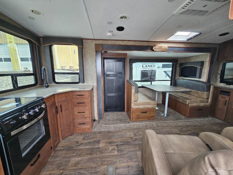 Pack your bags and escape the city life for weekend camping trips in this dual entry travel trailer. When you arrive at the campsite, take a hike to stretch your legs, then come back to prepare lunch on the three burner cooktop. You'll find plenty of counter space in the kitchen, plus an 8 cu. ft. refrigerator for cold drinks and perishables. The dual lounge chairs will have you feeling right at home, or you can choose the optional sofa with built-in recliners, or the optional sleeper sofa if you need more sleeping space. This model includes a walk-through bath that is both spacious and convenient since it leads to to the front master bedroom. You can't beat a queen bed, dual bedroom wardrobes, and your own exterior entry door!
