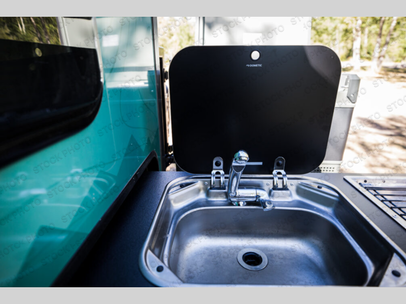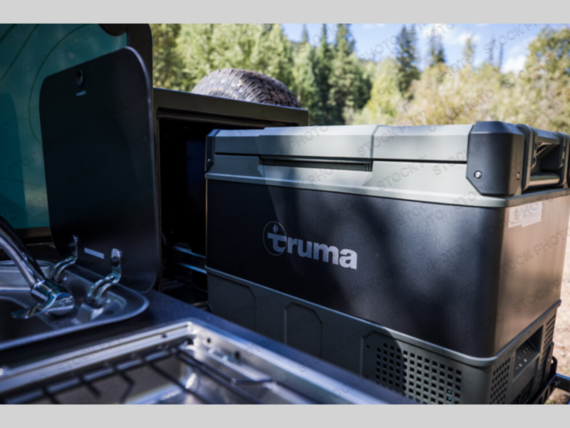 This travel trailer has nine internal storage compartments for you to keep your belongings, and there is a Zamp solar plug-in on the front box. You will find an external hot water shower, and you can add an optional shower privacy awning to create a secure space. There are two bunks that each have a 150-LB capacity, so your kids will sleep comfortably on their own cot above you. The exterior kitchen slide is exactly what you need to create dinner each day, and you can use the two-burner stainless steel cooktop, stainless steel sink, and Truma 69-quart dual-compartment refrigerator/freezer.
