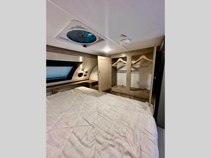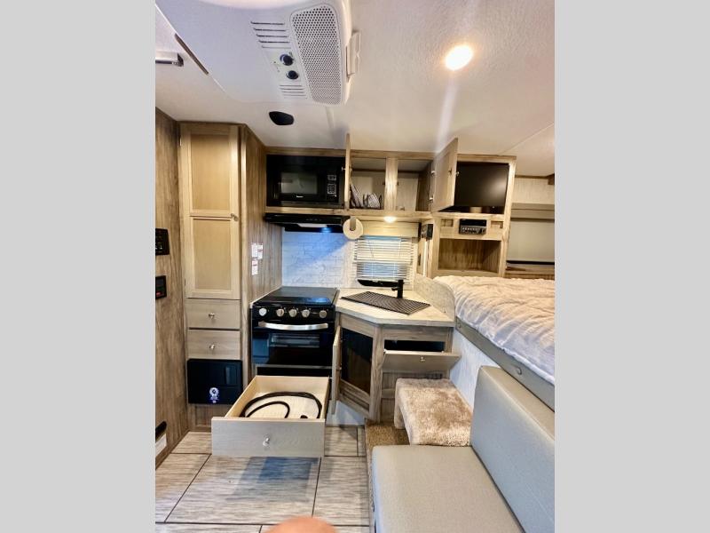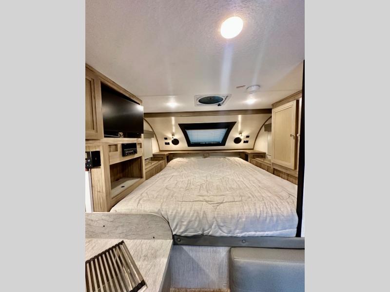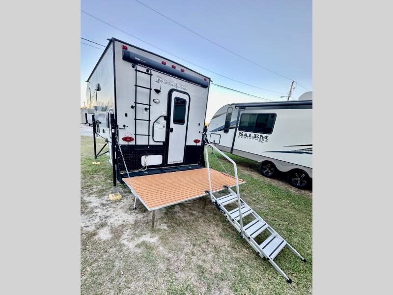 THIS WAS PURCHASED NEW IN 2022 AND NEVER SLEPT IN!! CUSTOMER TRADED IN FOR A BRAND NEW 5TH WHEEL - LOTS OF OPTIONS EVEN HAS A PATIO DECK ON THE BACK PERFECT FOR BEACH GETAWAYS OR ANY ADVENTURES!! 200WATT SOLAR PANEL INCLUDED FOR OFF GRID - DUAL BATTERIES - ROOF MOUNT A/C - THULE SIDE PATIO & REAR PATIO AWNINGS WITH LED LIGHTS TANKLESS WATER HEATER - ELECTRIC JACKS -