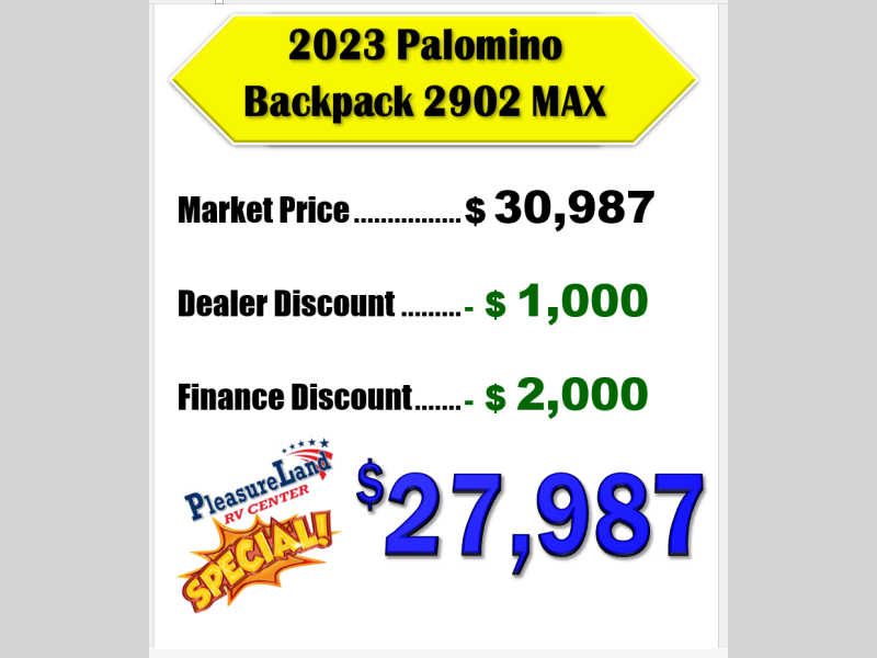 Used 2023 Palomino Backpack Edition HS 2902 MAX Truck Camper