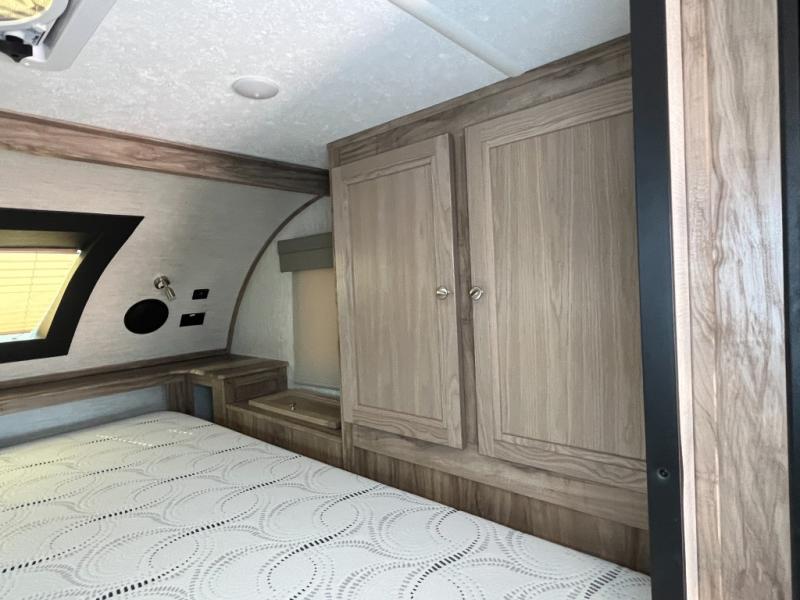 You will love all of the extra space provided in this hard side truck camper with the 42" x 62" booth dinette slide! If you're not needing the additional sleeping space provided by the dinette, choose the optional theater seating! Prepare your best meals with the three burner cooktop, store your canned goods in the wardrobe/pantry, and and leftovers in the two way 6 cu. ft. refrigerator, plus there is a microwave to pop a bag of popcorn at night. After a fun day of fishing, freshen up in the wet bath and relax on the front queen bed with a wrap around night stand, chests on either side, and entertainment center, and a closet for your clothes!