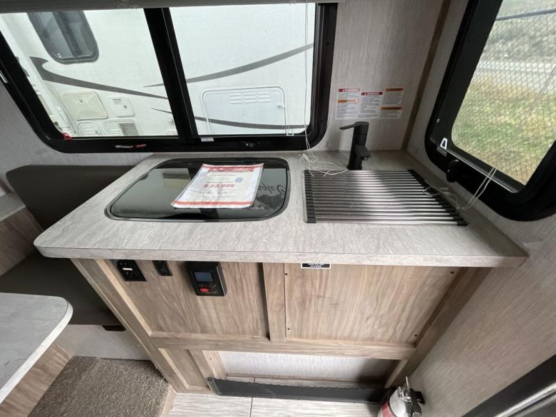 Enjoy a home on wheels with this hard side truck camper! It features a front queen bed to lay your head at night, a two burner cooktop to prepare your best meals, and a refrigerator to store any leftovers. You can enjoy your meals at the U-shaped seating area with a table then play a card game or two. There is even a closet to use as needed!