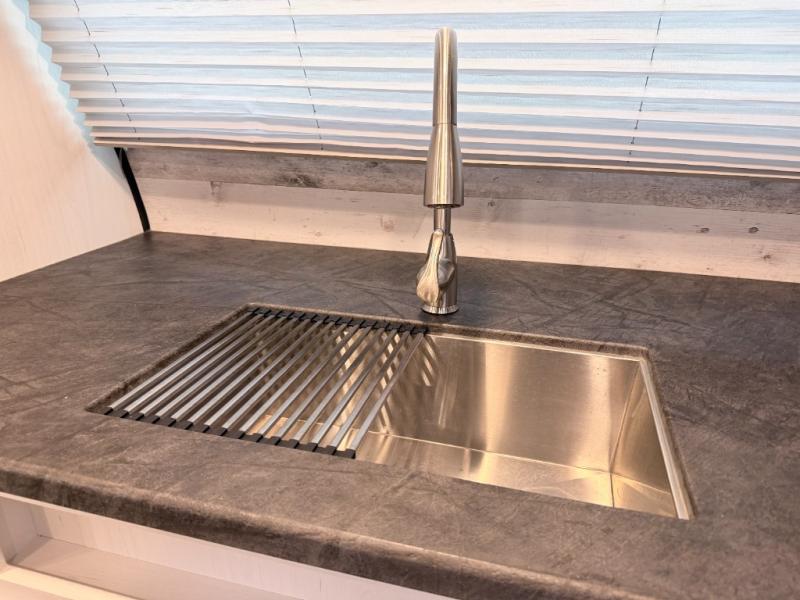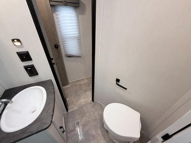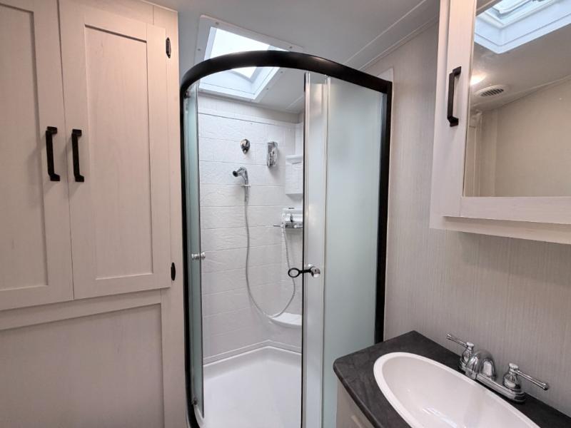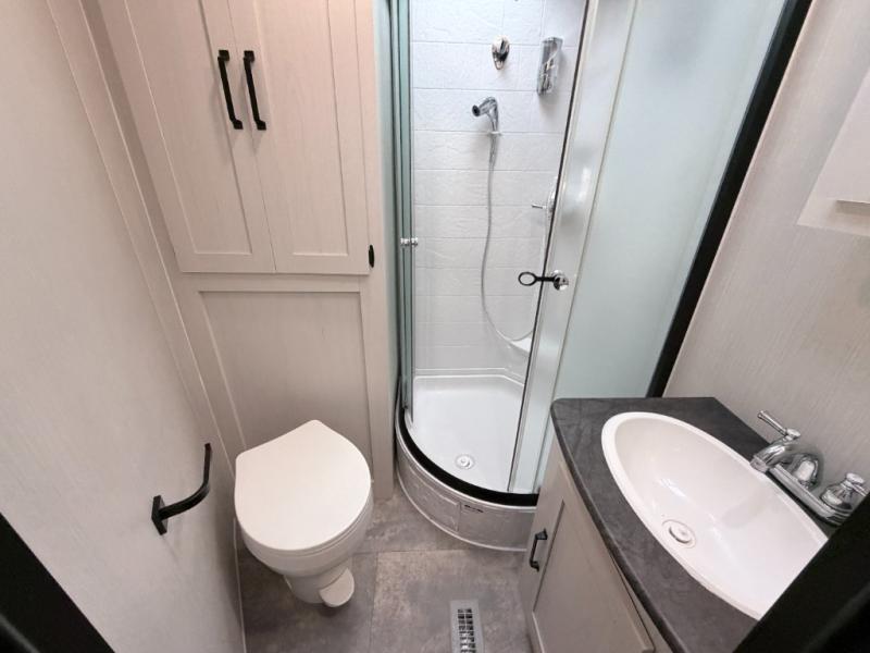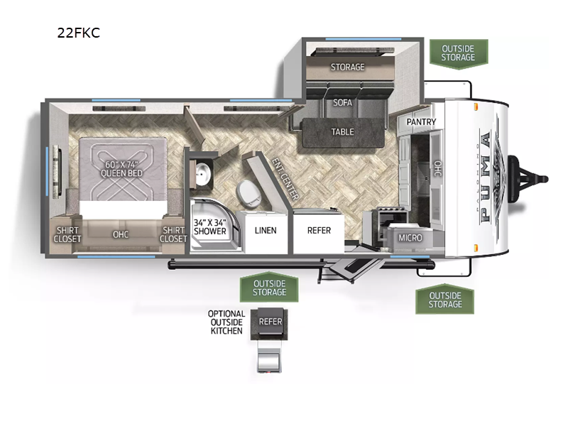 - Rear private bedroom with a 60" x 74" RV queen bed