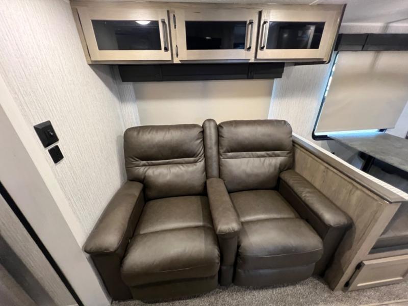 If you're looking for family-fun adventure then you need one of these Palomino Puma fifth wheels, travel trailers, or toy haulers! They are built rugged, easy to tow, and jam packed with features. The Darco wrapped underbelly will protect your units vitals through every season and the AlphaPly roofing membrane covers it. They also have super lube axles and a powder coated frame. Their luxurious interiors feature a spice rack and built-in knife rack in the kitchen, USB charging ports to keep your electronics at 100%, and high density foam mattresses for a good night's rest. The required Advantage package comes with night roller shades for privacy at night, two outside speakers to crank up the tunes while you play cornhole, and an outside shower to keep the dirt outside where it belongs, plus so much more!