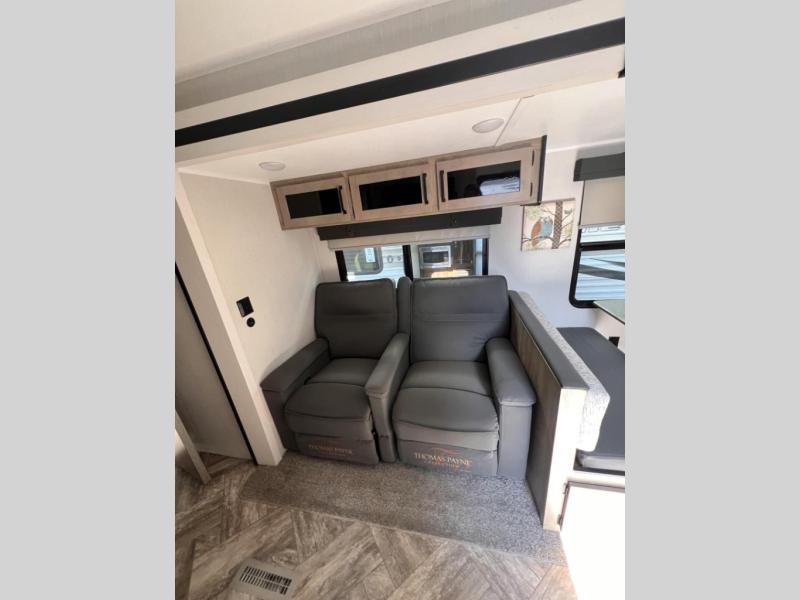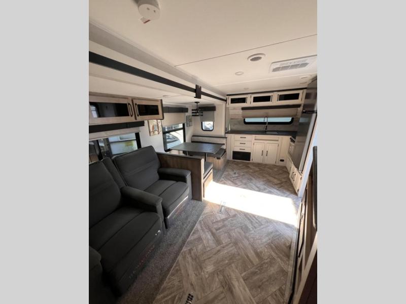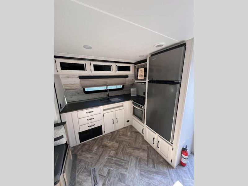 If you're looking for family-fun adventure then you need one of these Palomino Puma fifth wheels, travel trailers, or toy haulers! They are built rugged, easy to tow, and jam packed with features. The Darco wrapped underbelly will protect your units vitals through every season and the AlphaPly roofing membrane covers it. They also have super lube axles and a powder coated frame. Their luxurious interiors feature a spice rack and built-in knife rack in the kitchen, USB charging ports to keep your electronics at 100%, and high density foam mattresses for a good night's rest. The required Advantage package comes with night roller shades for privacy at night, two outside speakers to crank up the tunes while you play cornhole, and an outside shower to keep the dirt outside where it belongs, plus so much more!