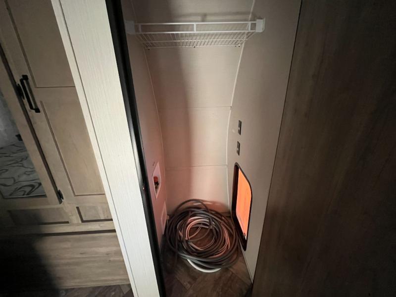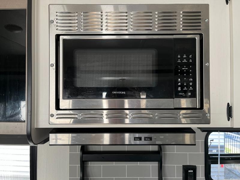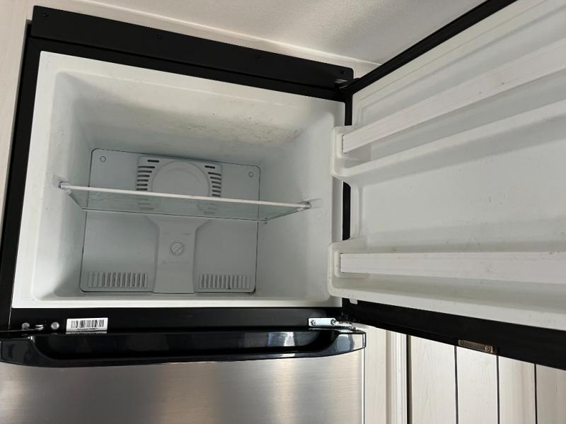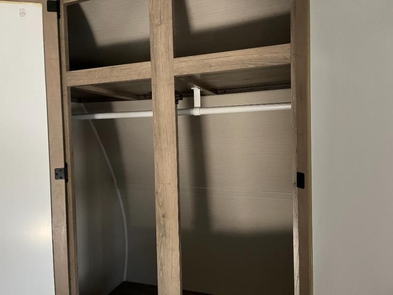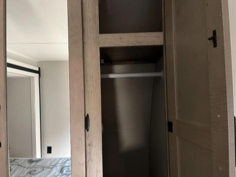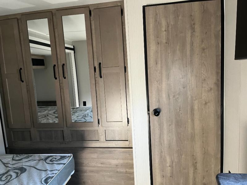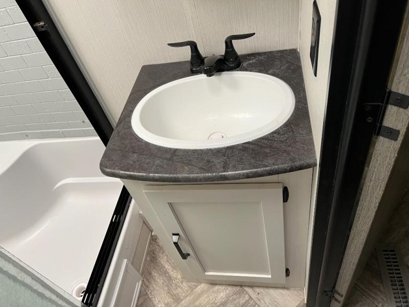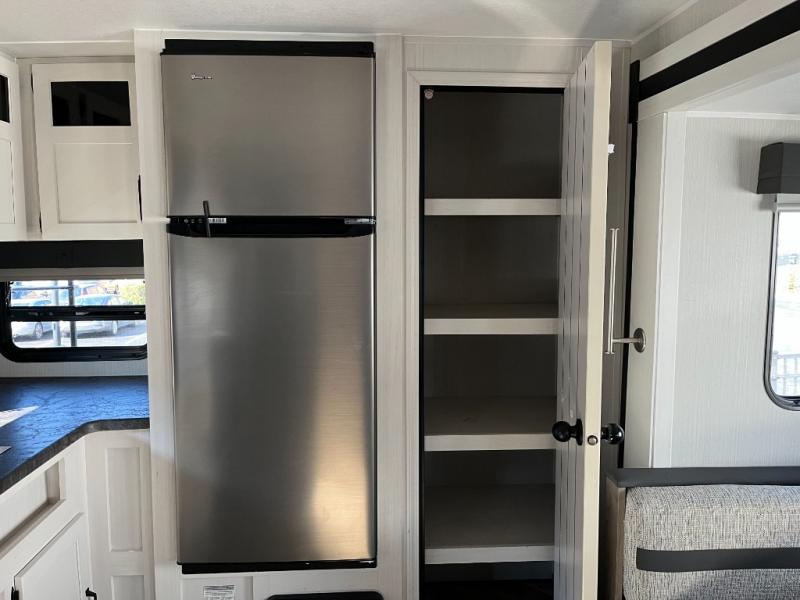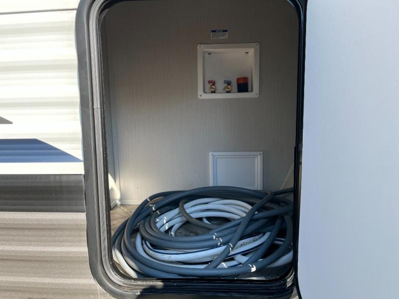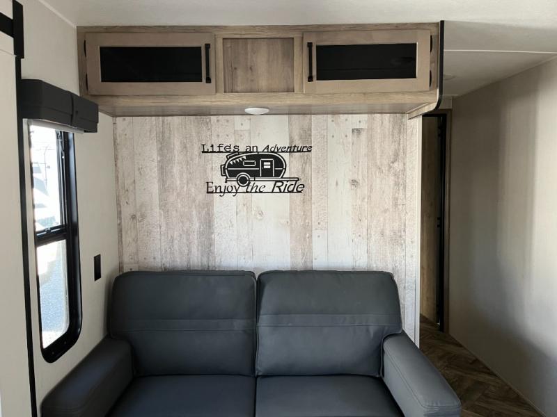The functional kitchen in the 30RKQS is designed to support real meal prep on the road. Featuring a three-burner cooktop with oven, microwave, and a spacious refrigerator, this kitchen gives you the tools you need to prepare home-style meals, quick breakfasts, or camp-favorite dinners. Ample countertop space and storage cabinets keep your cookware, dishes, and pantry essentials organized and within reach throughout your trip.