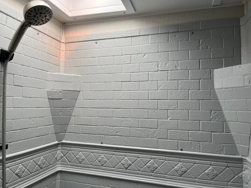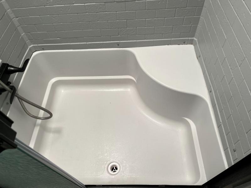 Shower, toilet, and vanity provide independence and comfort at every campsite.