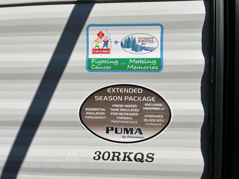Palomino RV is known for quality and durability, and the Puma 30RKQS is built with reliable materials and systems to support years of travel. From sturdy exterior framing to dependable interior systems, this travel trailer is designed for everyday use and long-lasting enjoyment.