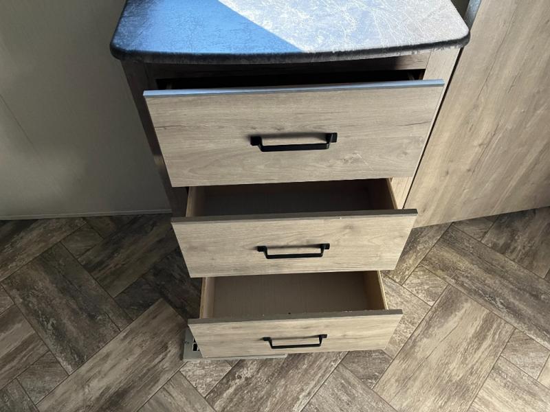 One of the standout features of this model is its rear kitchen layout. Positioned for easy access and interaction with the living area, the rear kitchen provides generous workspace and makes cooking a social activity. Whether you’re preparing meals while guests relax or watching the sunset through the rear windows, this layout enhances the flow and enjoyment of your home-away-from-home.