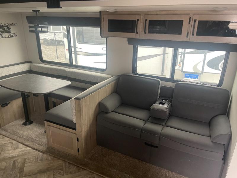 If you're looking for family-fun adventure then you need one of these Palomino Puma fifth wheels, travel trailers, or toy haulers! They are built rugged, easy to tow, and jam packed with features. The Darco wrapped underbelly will protect your units vitals through every season and the AlphaPly roofing membrane covers it. They also have super lube axles and a powder coated frame. Their luxurious interiors feature a spice rack and built-in knife rack in the kitchen, USB charging ports to keep your electronics at 100%, and high density foam mattresses for a good night's rest. The required Advantage package comes with night roller shades for privacy at night, two outside speakers to crank up the tunes while you play cornhole, and an outside shower to keep the dirt outside where it belongs, plus so much more!
