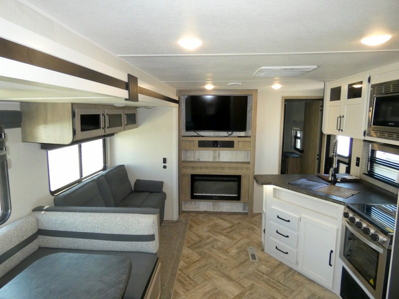 If you're looking for family-fun adventure then you need one of these Palomino Puma fifth wheels, travel trailers, or toy haulers! They are built rugged, easy to tow, and jam packed with features. The Darco wrapped underbelly will protect your units vitals through every season and the AlphaPly roofing membrane covers it. They also have super lube axles and a powder coated frame. Their luxurious interiors feature a spice rack and built-in knife rack in the kitchen, USB charging ports to keep your electronics at 100%, and high density foam mattresses for a good night's rest. The required Advantage package comes with night roller shades for privacy at night, two outside speakers to crank up the tunes while you play cornhole, and an outside shower to keep the dirt outside where it belongs, plus so much more!
