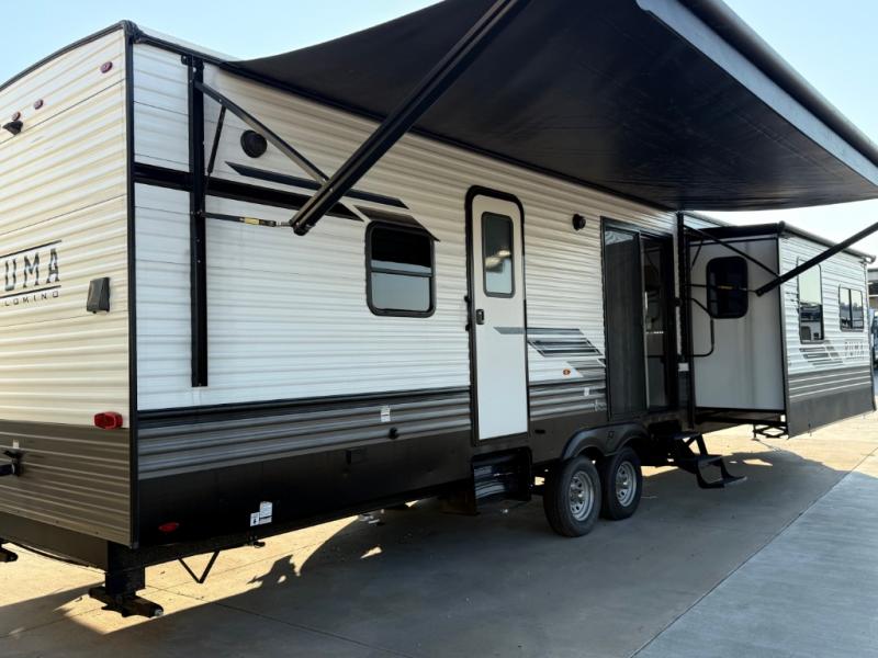 Each Puma Destination trailer by Palomino is designed to give you unforgettable getaways to the destination of your choice! The AlphaPly roofing membrane and powder coated frames are what make these models ultra durable, and the super lube axles will provide smooth towing from home to campground. The Value Shopper Package includes Beauflor linoleum, an AM/FM/Bluetooth stereo, a high-rise faucet with a sprayer, bedroom TV hook-up, and many many more conveniences. You'll find the designer window treatments in the living room and decorative kitchen backsplash will make your space feel more like home, plus there are USB charging ports for your electronics and plenty of storage space for all your belongings. And you can add the optional Marquis Edition Package that includes an outside shower, a solid surface countertop, two exterior speakers, and more features that will add to your comfort!
