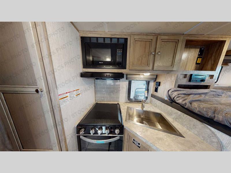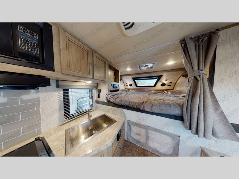Your 3/4 ton truck has met its match with this hard side truck camper. You can sleep three people each night thanks to the queen bed up front and the jack knife sofa with a table. There is a wardrobe/pantry, a closet, plus a wrap-around nightstand that will provide you with tons of storage space. Since this model includes a two burner cooktop, you won't have to cook over an open fire each night, and check out the wet bath leaving you clean and fresh!
