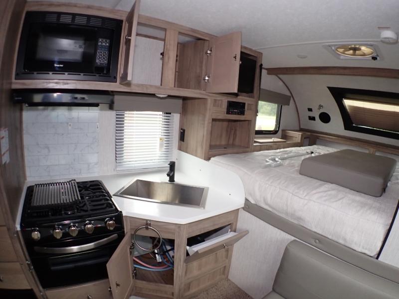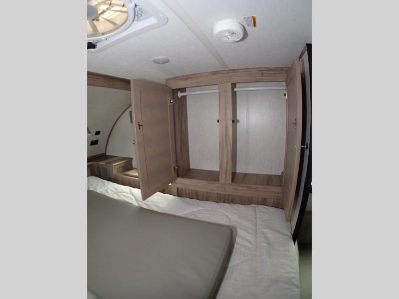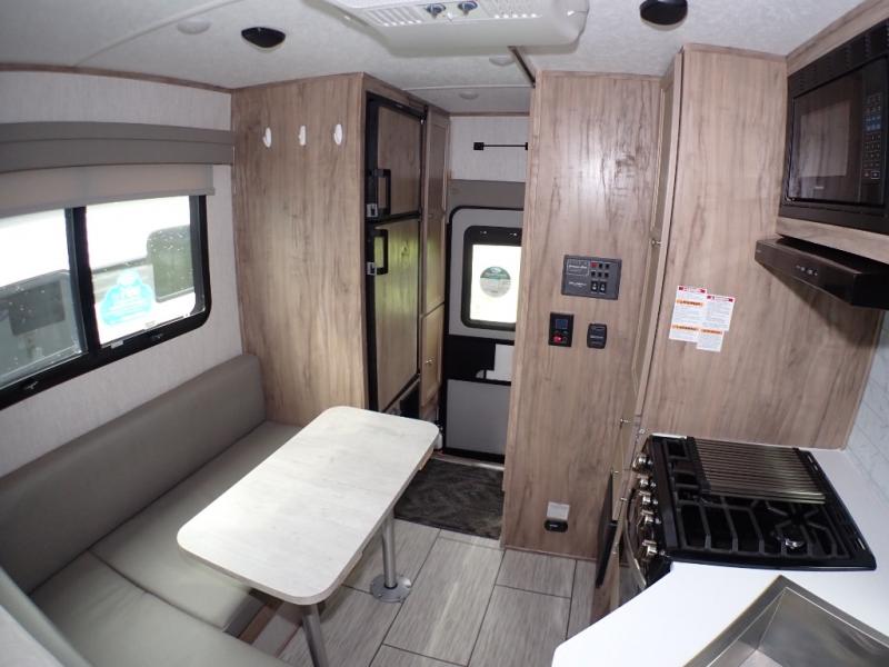 Take your adventures up at notch in this hard side max camper! You'll have everything you need, from a wet bath on board to a three burner cooktop and a microwave oven. There is also a 6 cu. ft. two-way refrigerator and a wardrobe/pantry for extra storage space. After dinner is cleaned up you can play a game at the L-shaped dinette, or relax on the queen bed for a movie night on the TV.
