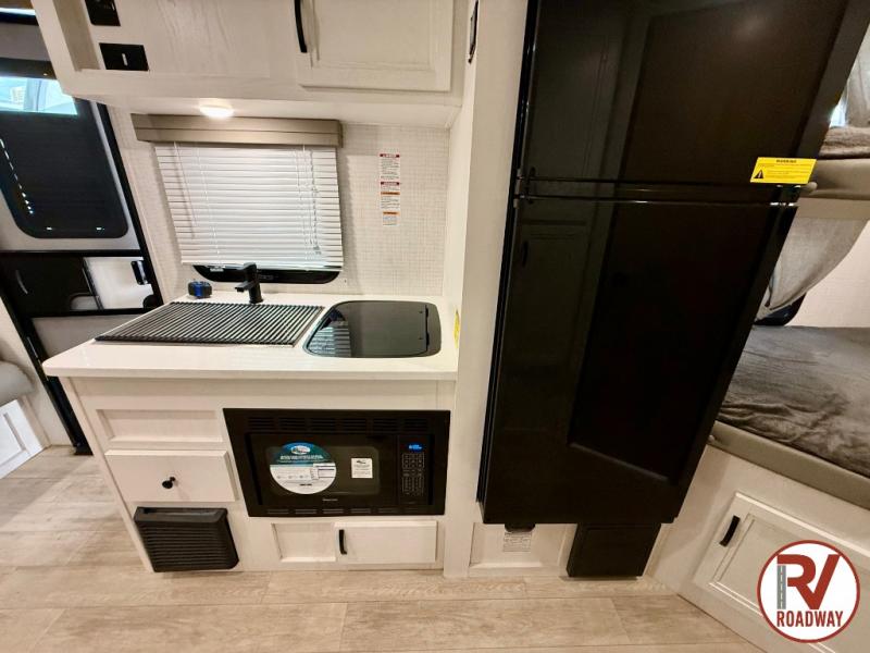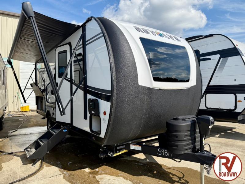 The Revolve travel trailers by Palomino are 100% powered by solar, allowing you to go off the beaten path. Each model includes vacuum bonded construction with Azdel, fully walkable roofs, and a hi-gloss gel coat front cap with Line X protection on the windshield. You'll appreciate the Off Grid package for all your charging needs. There are four 100-watt solar panels, four Lithium batteries, an On Board battery charger and monitor panel, plus a tow vehicle power adapter. The solid surface countertops found inside will be easy to keep clean, and the LED lighting will not only keep your space well lit, but will also use less power. Plan to go anywhere with a Revolve travel trailer!