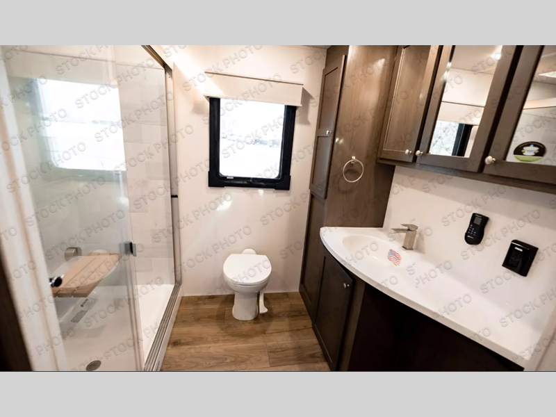 With any River Ranch fifth wheel by Palomino, you will love the practical living, the storage, the tow ability, and the lavish style in each luxury RV! There is a 7' interior height and a 101" wide body for added space, plus frameless windows, worry-free composite floors, and vacuum bonded walls with Azdel for durability. The River Package is a mandatory option you'll love having with features such as, a touch screen control operating system, a MORryde LRE4000 suspension, and three A/C's units with an energy management system. These fifth wheels also include the Ranch Package that comes with a memory foam mattress, stainless steel residential appliance package, MCD day/night roller shades, plus a JBL sound system. There's many more features to love about the River Ranch fifth wheels, like the upgraded true solid surface countertops, the French mirrored sliding closet doors, and the painted fiberglass front cap!